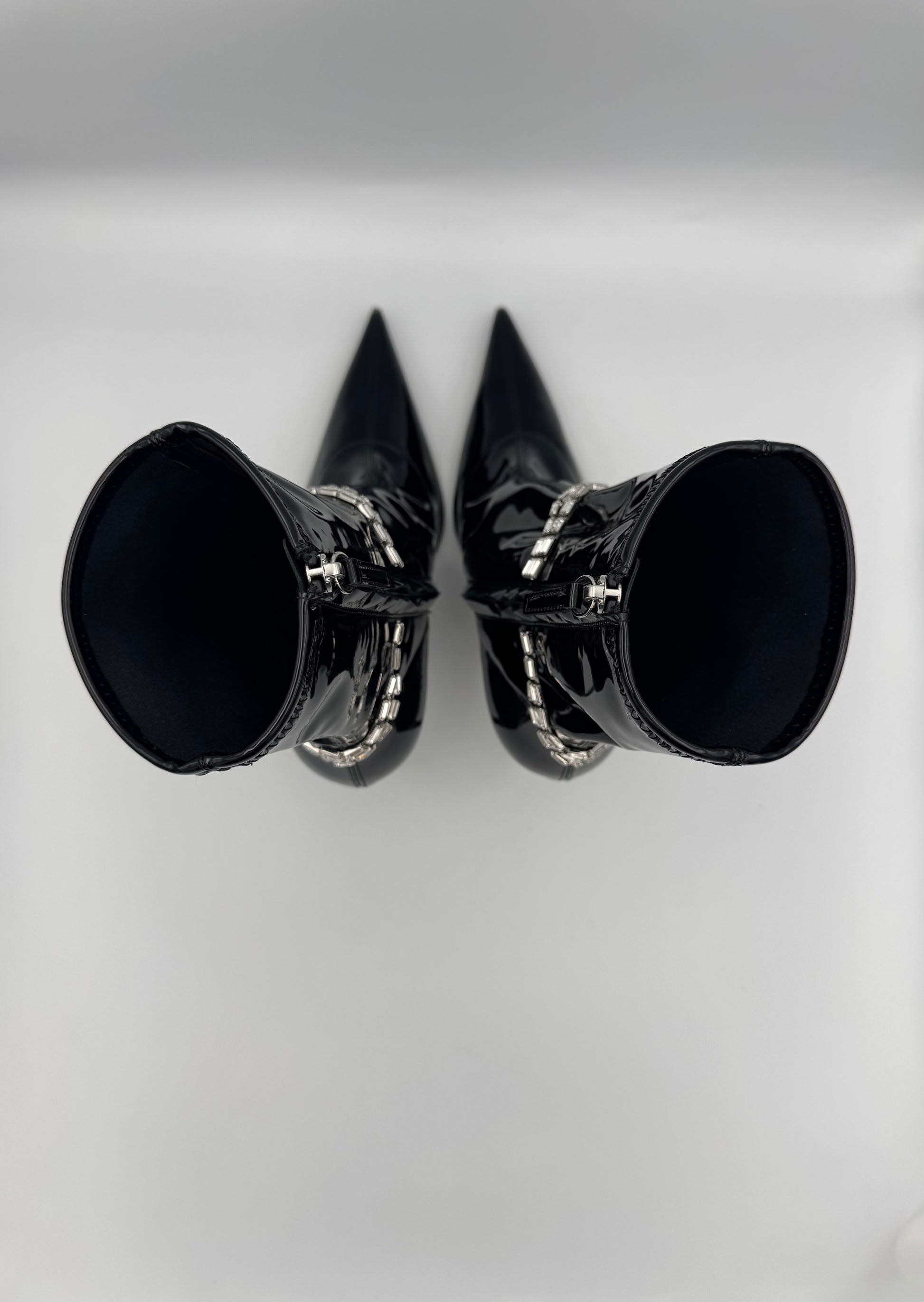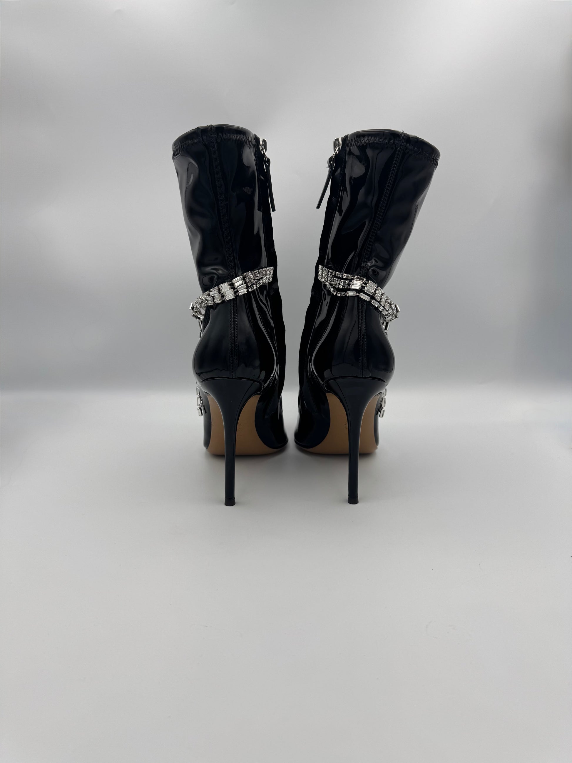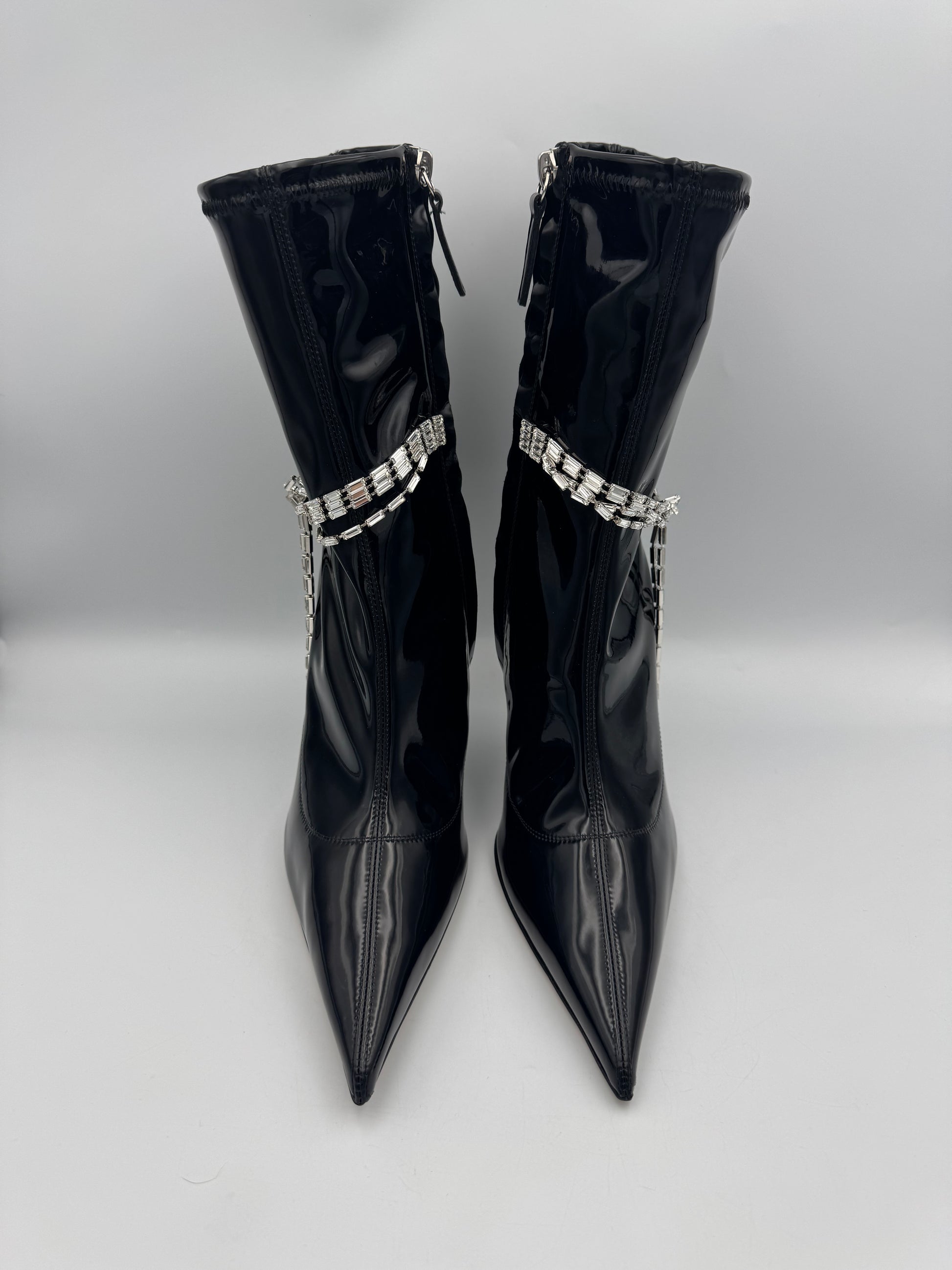 Patent Leather Ankle Boots with Crystal Chain Detail size 39