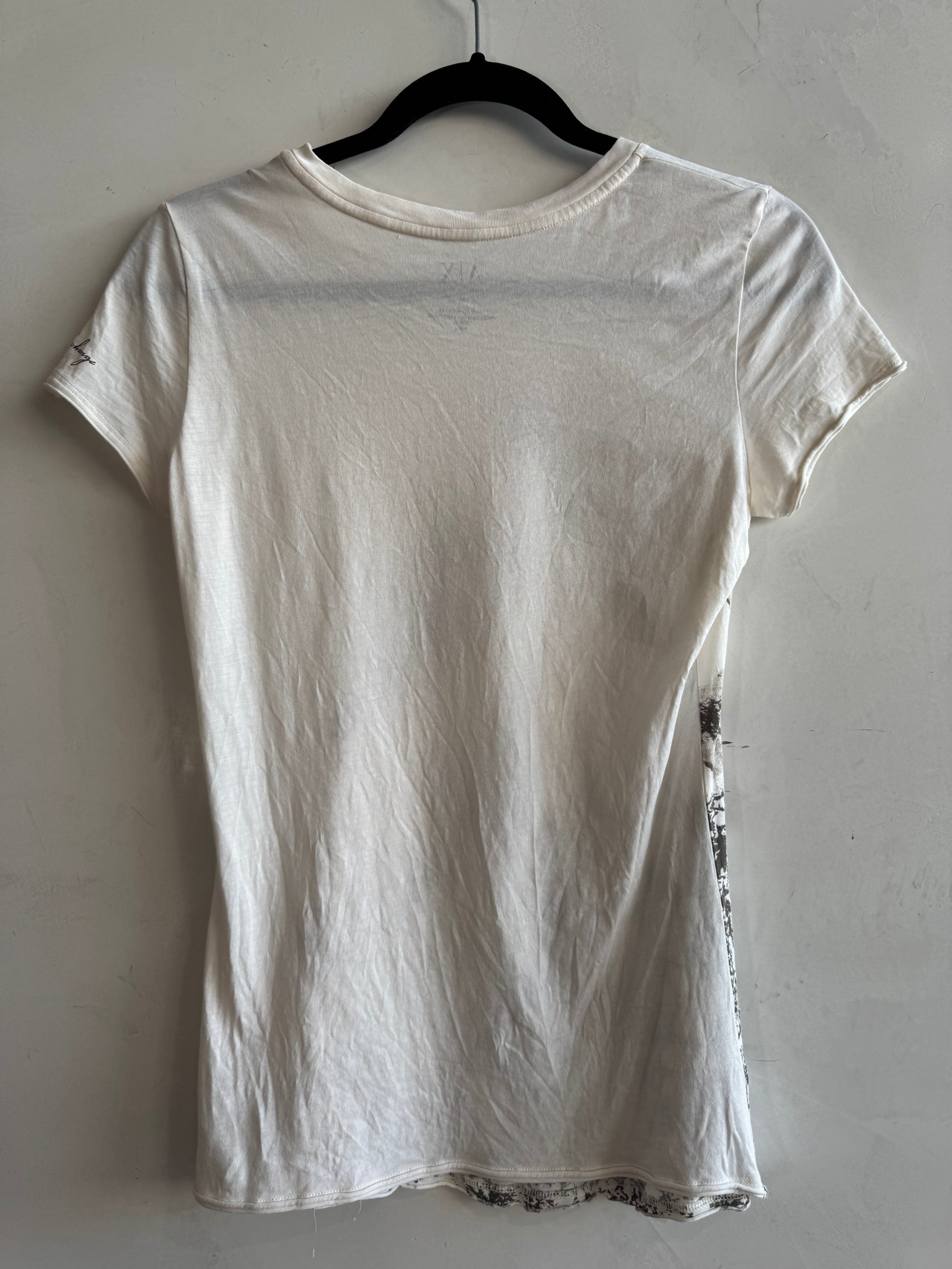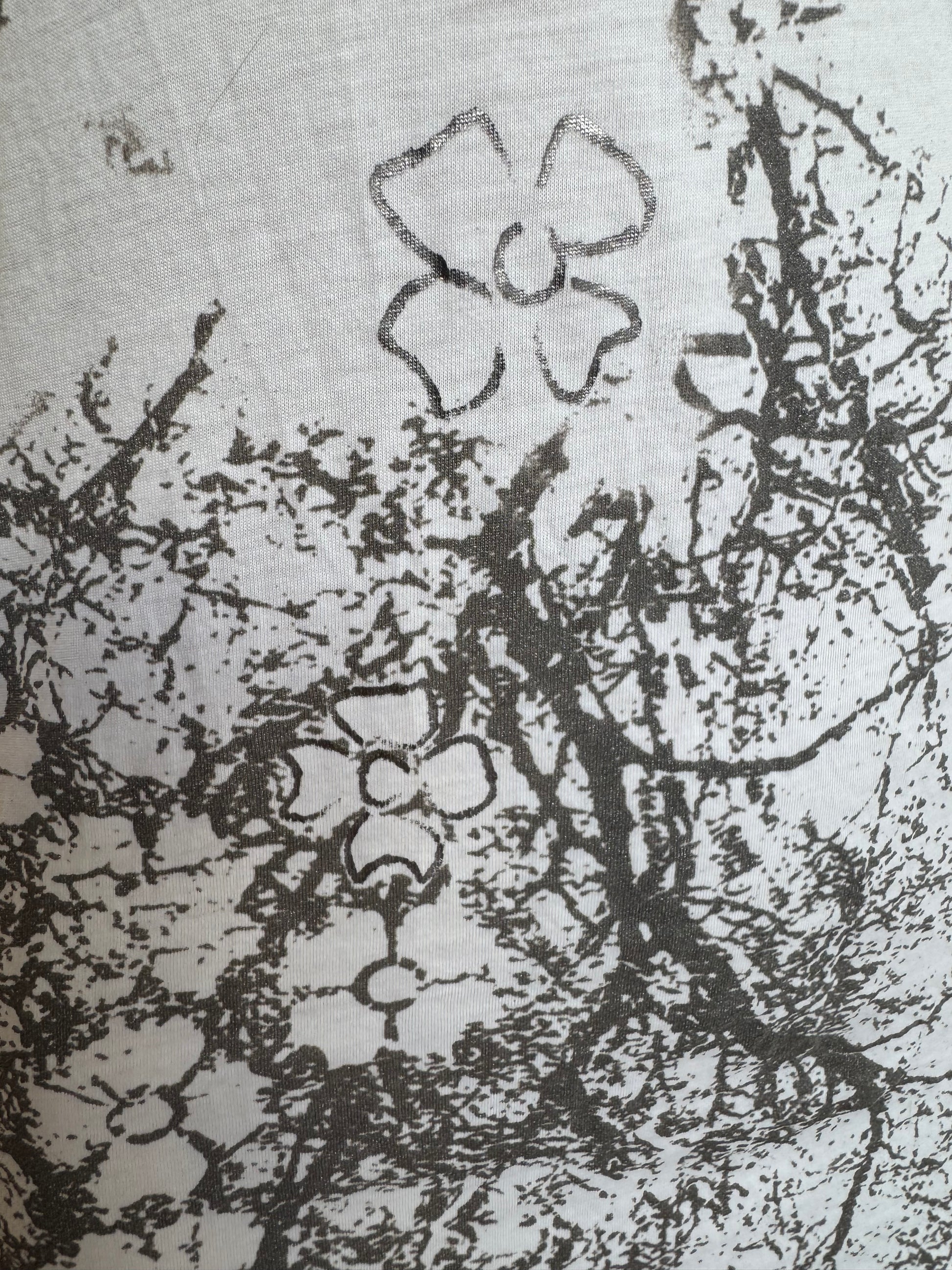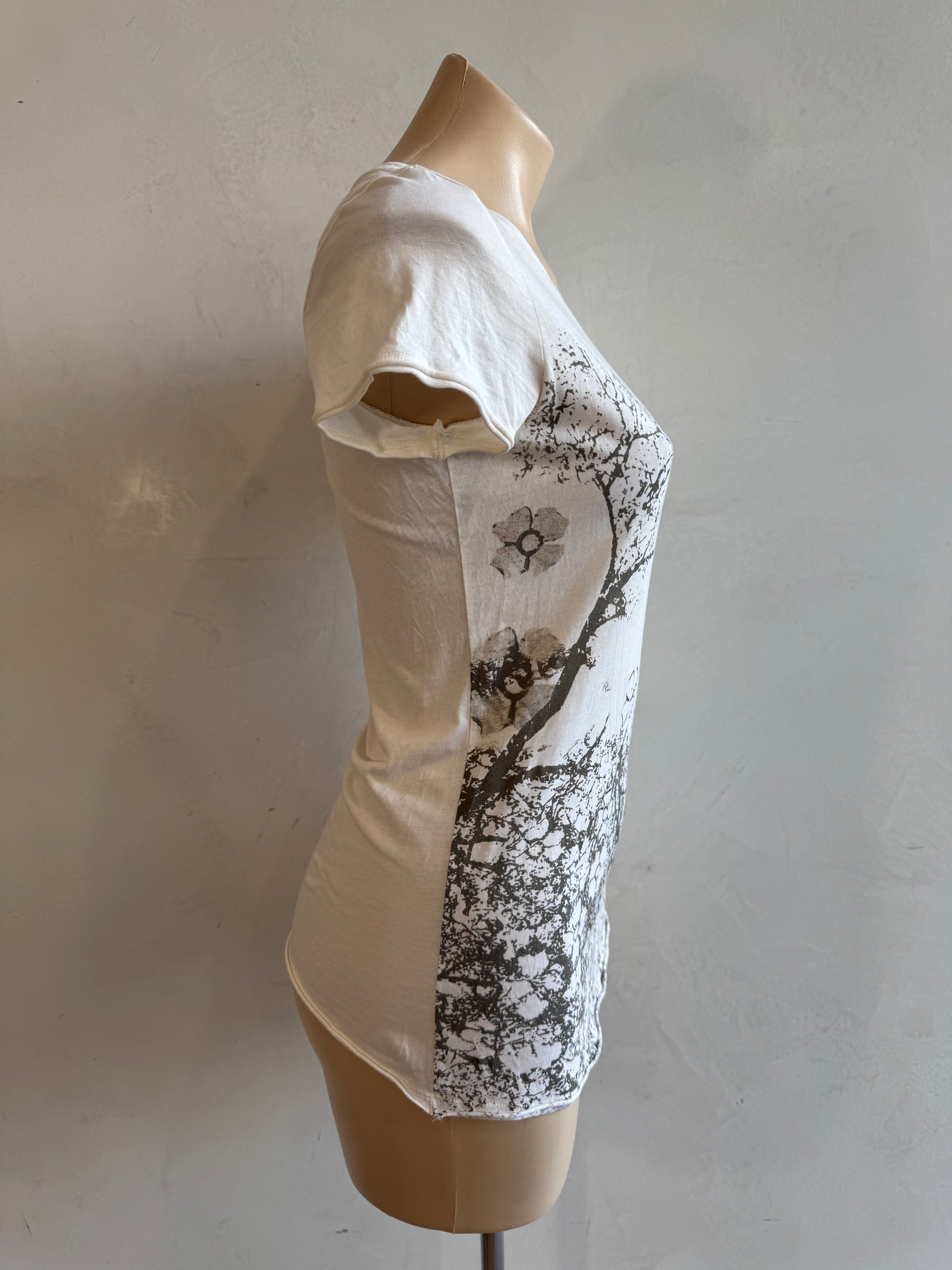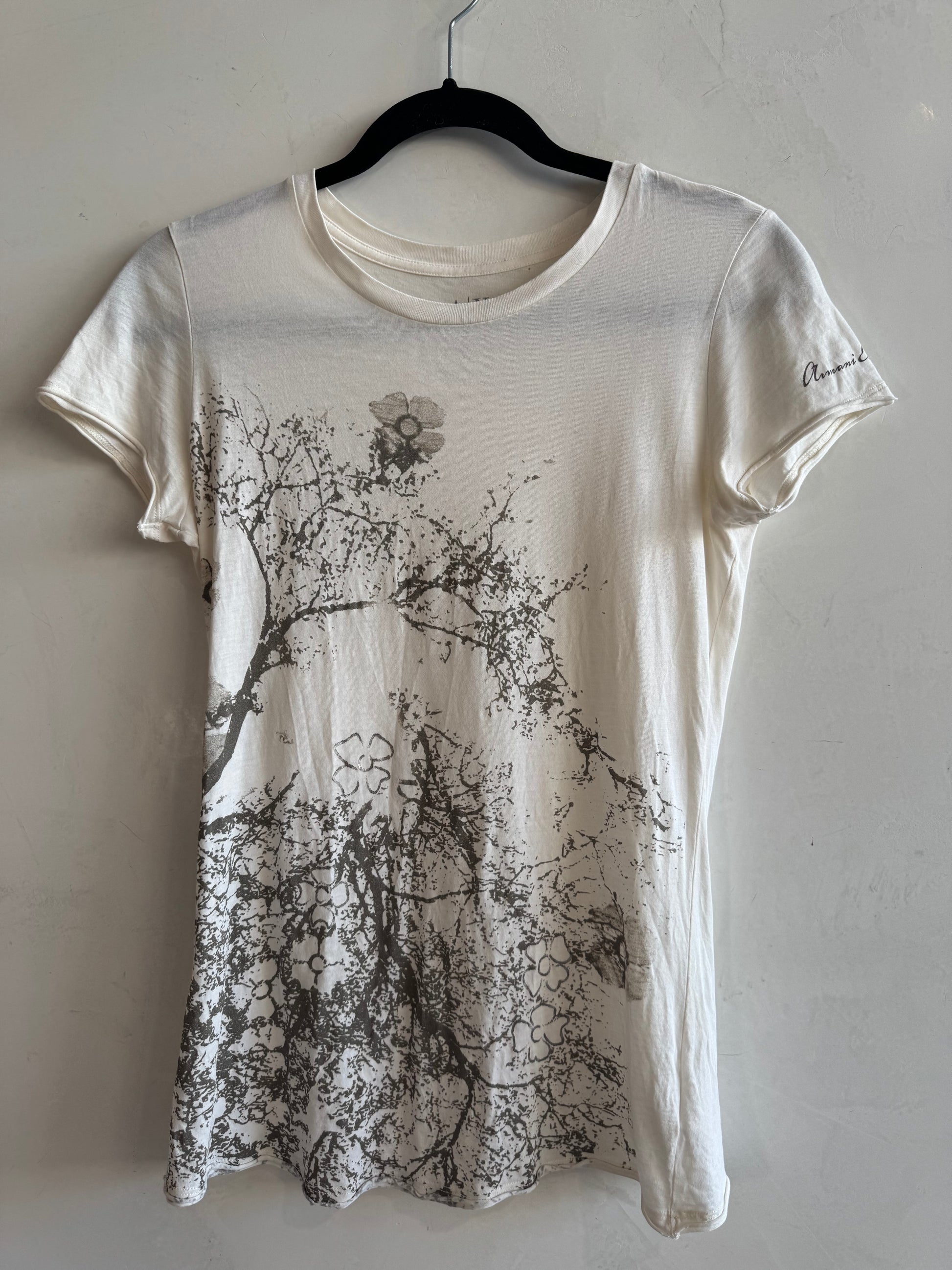 Ecru Graphic Tshirt from Armani Exchange, featuring metallic brown print of a bush with flowers.