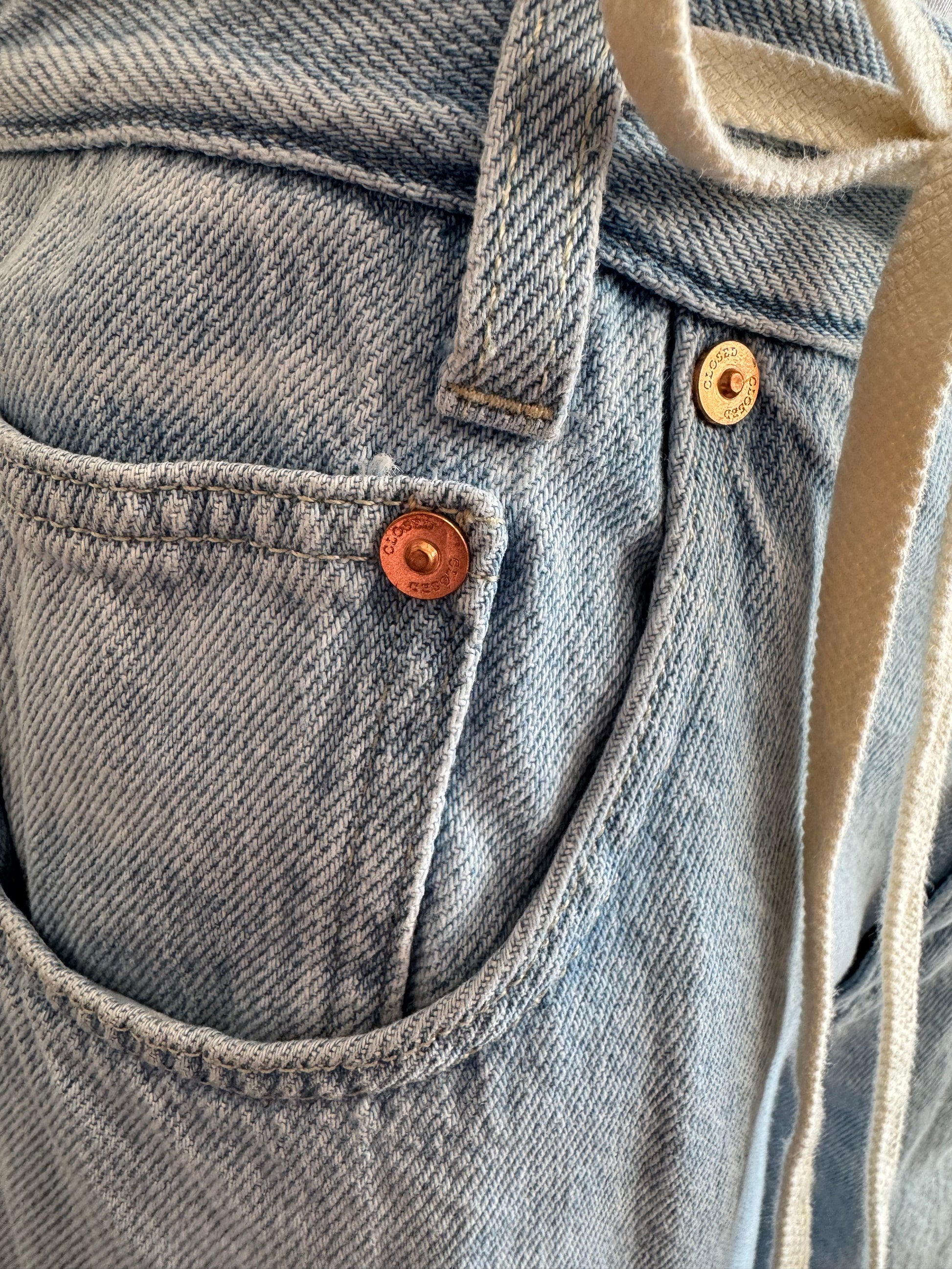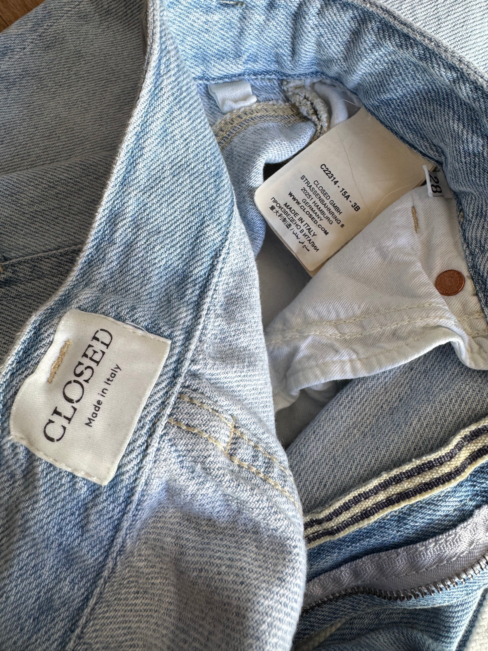 Blue wide leg jeans from.the brand Closed. Has had alteration to the shorter. Please note the small stain near the zip on the front.