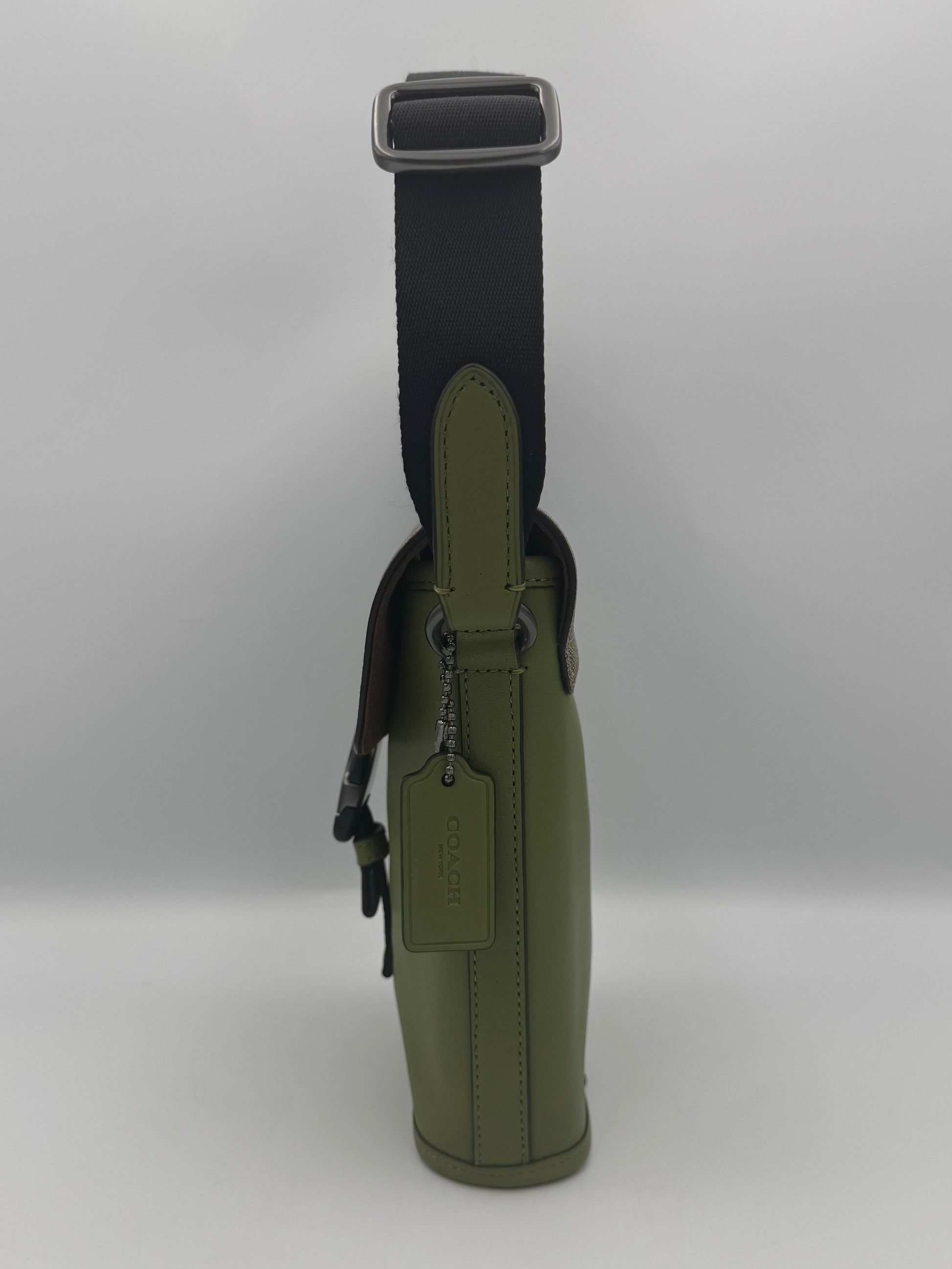 Coach Men's Track Small Flap Crossbody Signature Khaki Olive Green CC027
