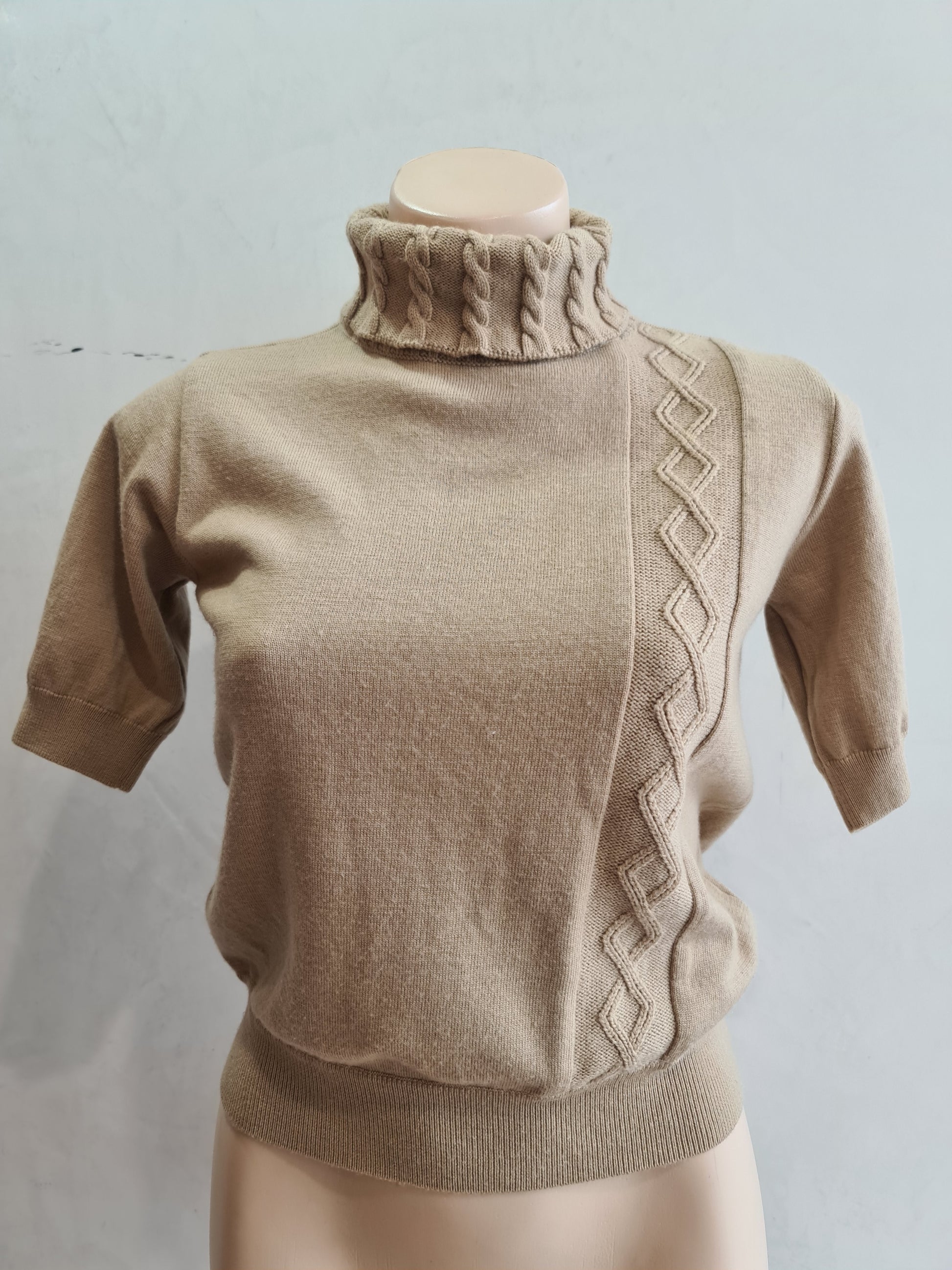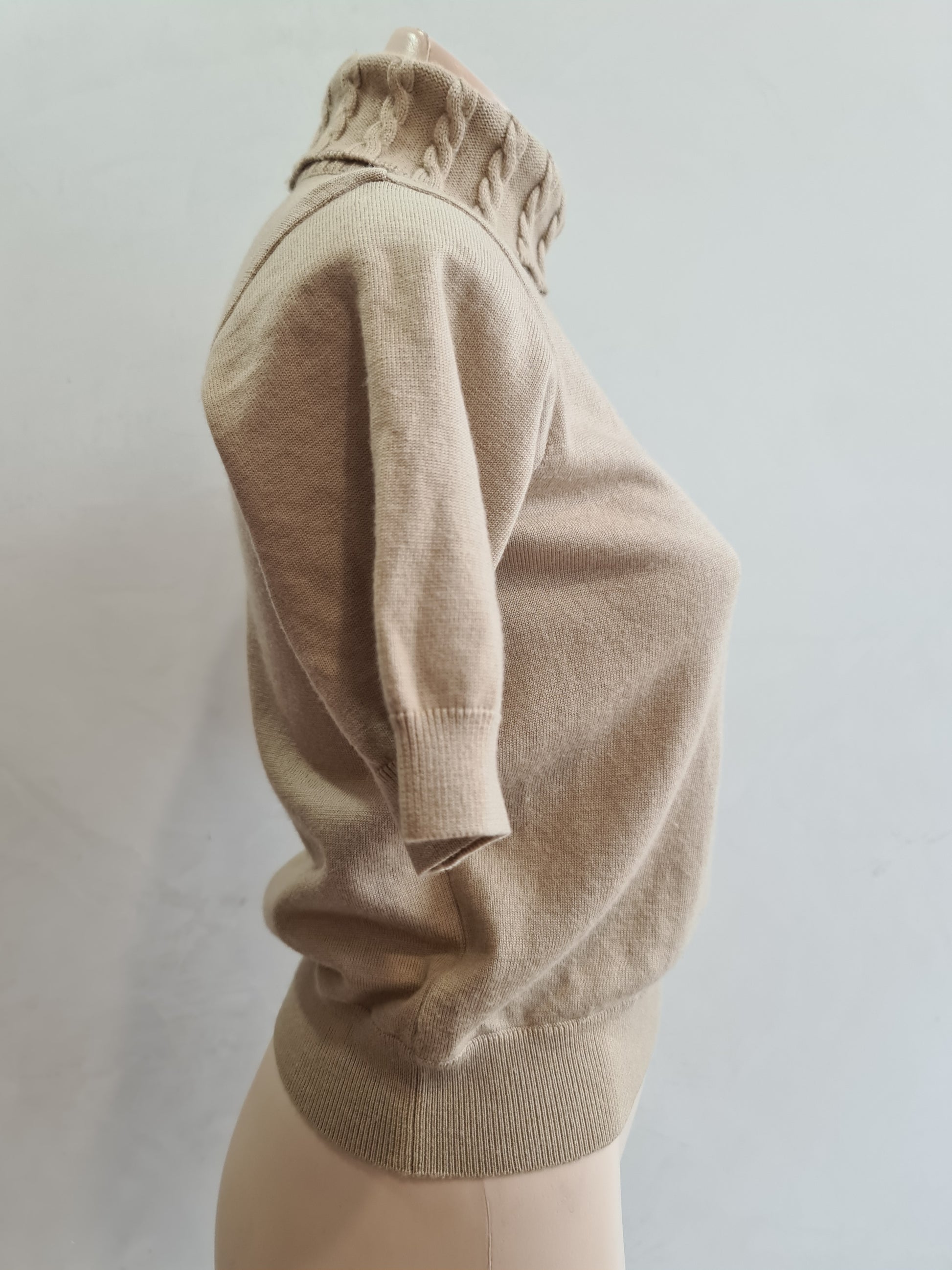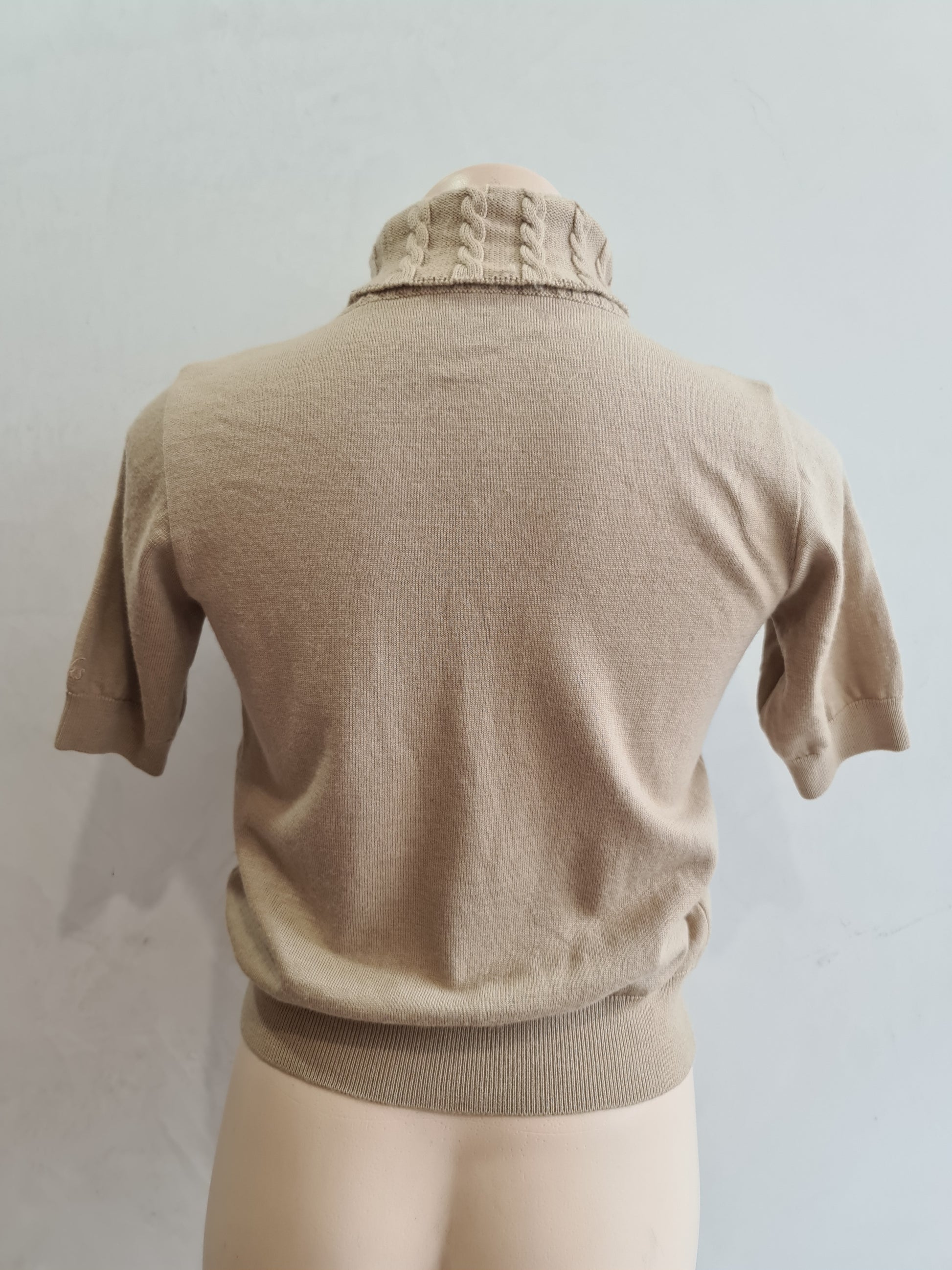 Beige high turtle Knit Top with short sleeves from golf brand Daks