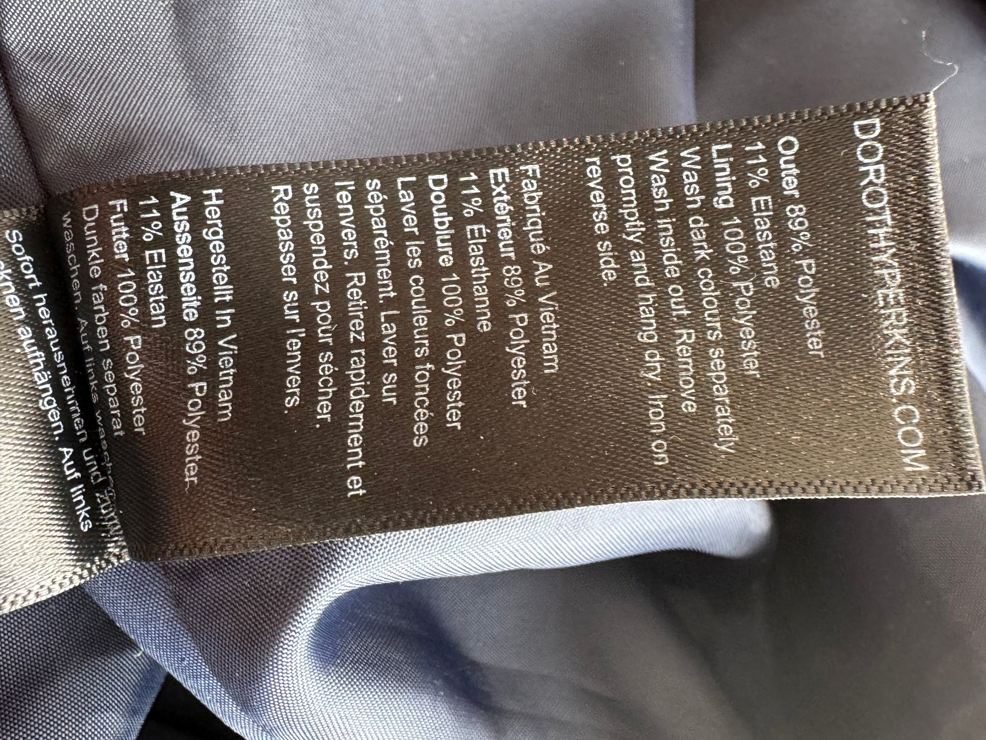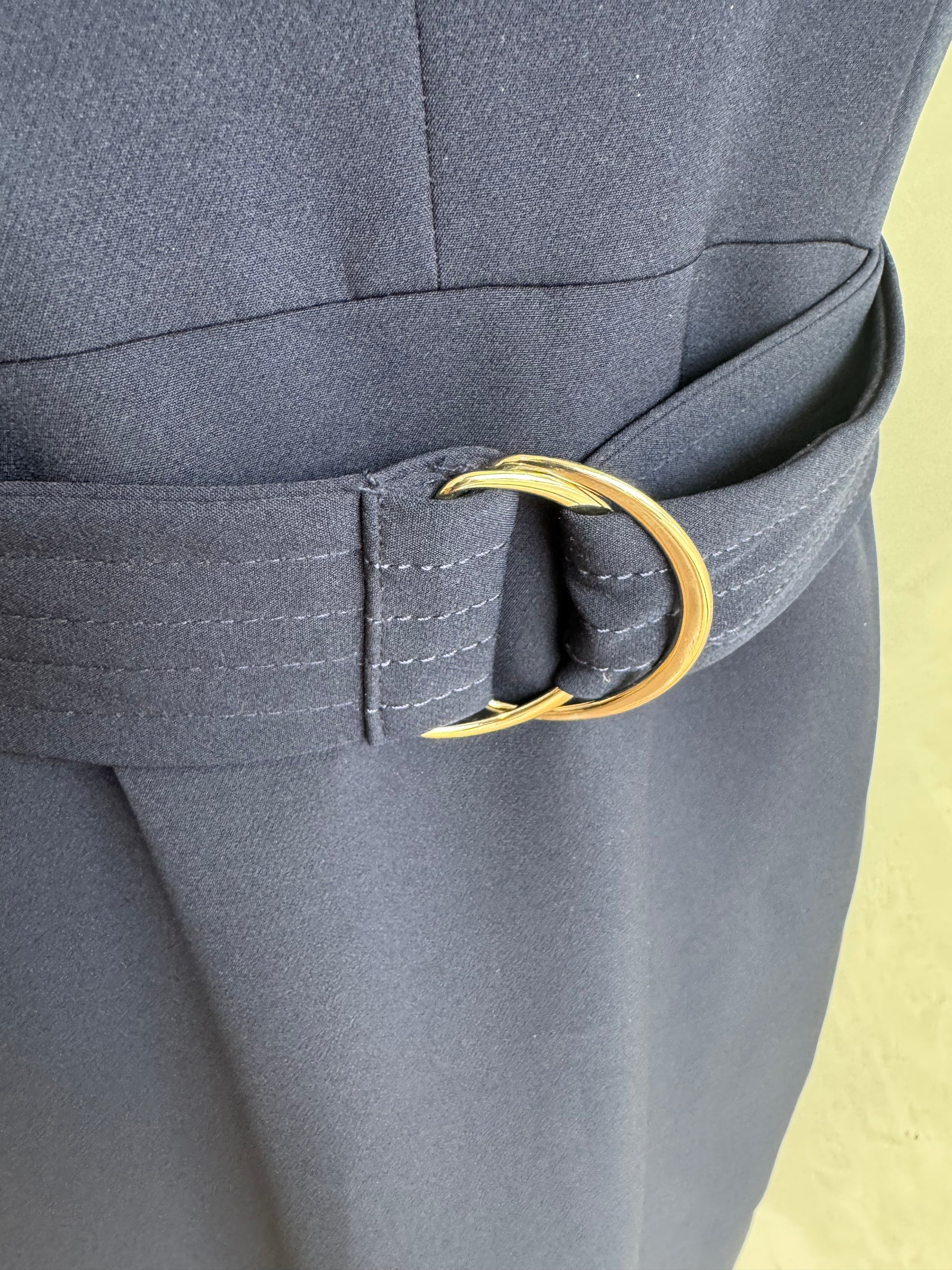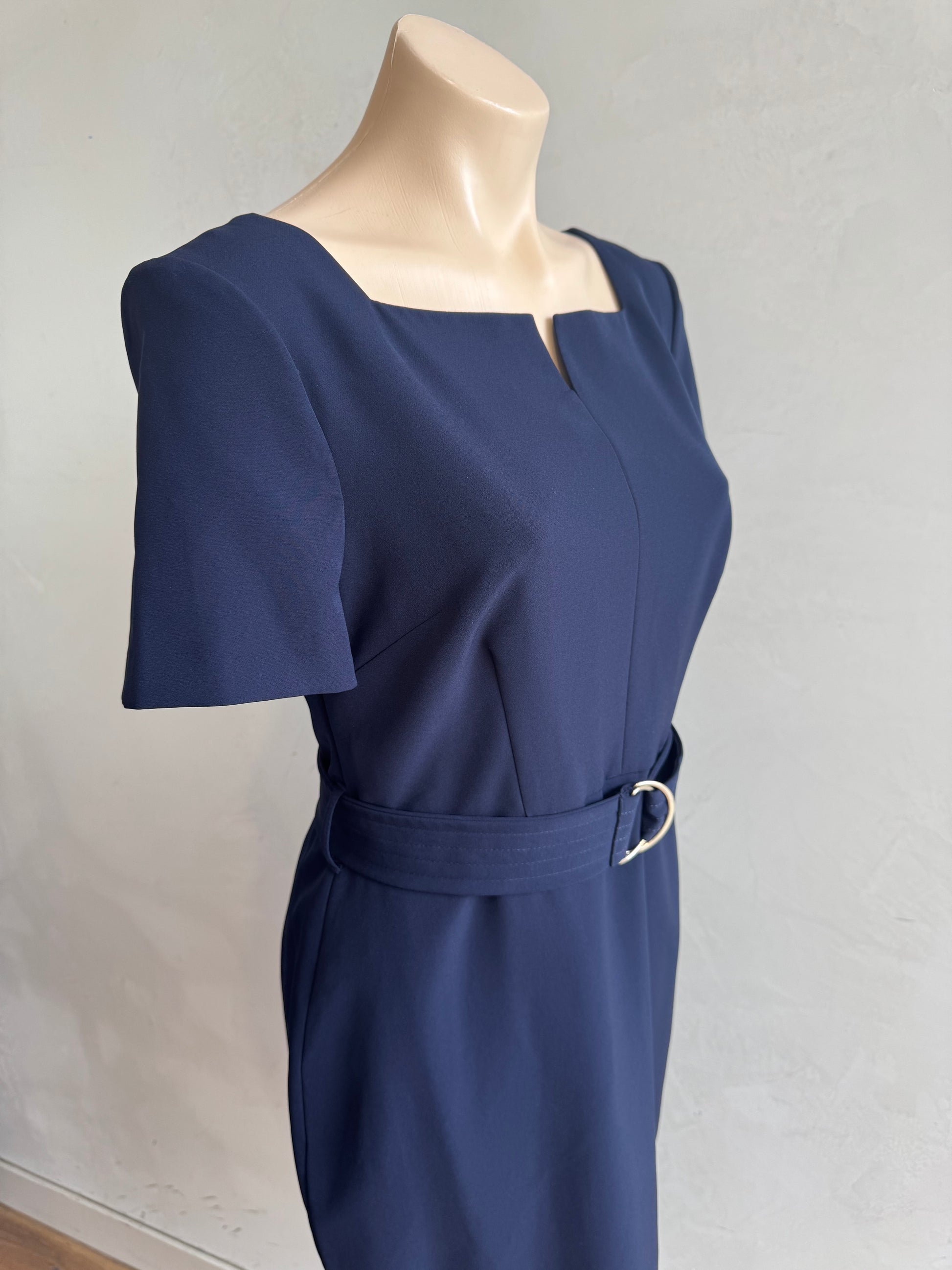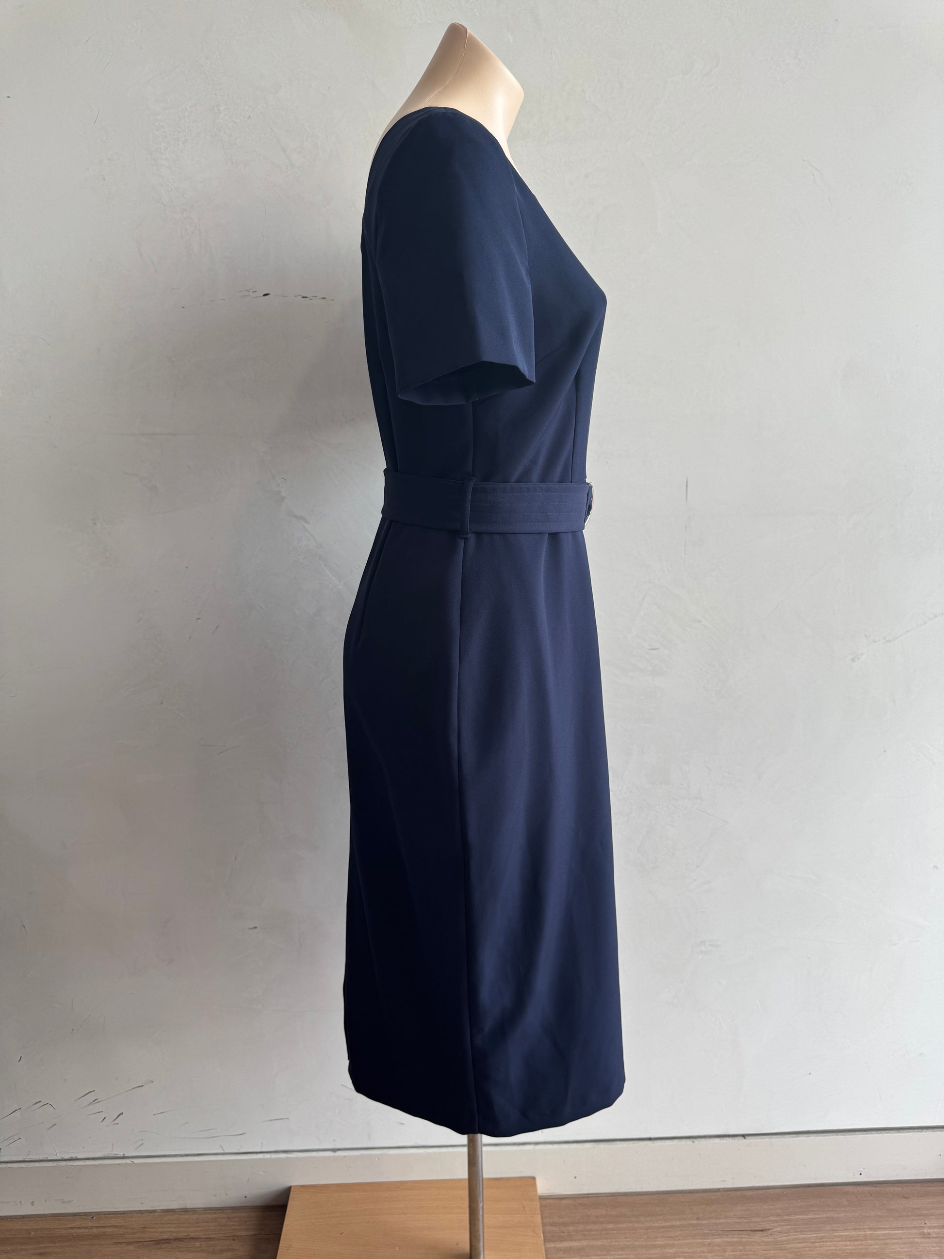 Fitted navy dress from Dorothy Perkins with belt, has a back zip and back skirt slit.