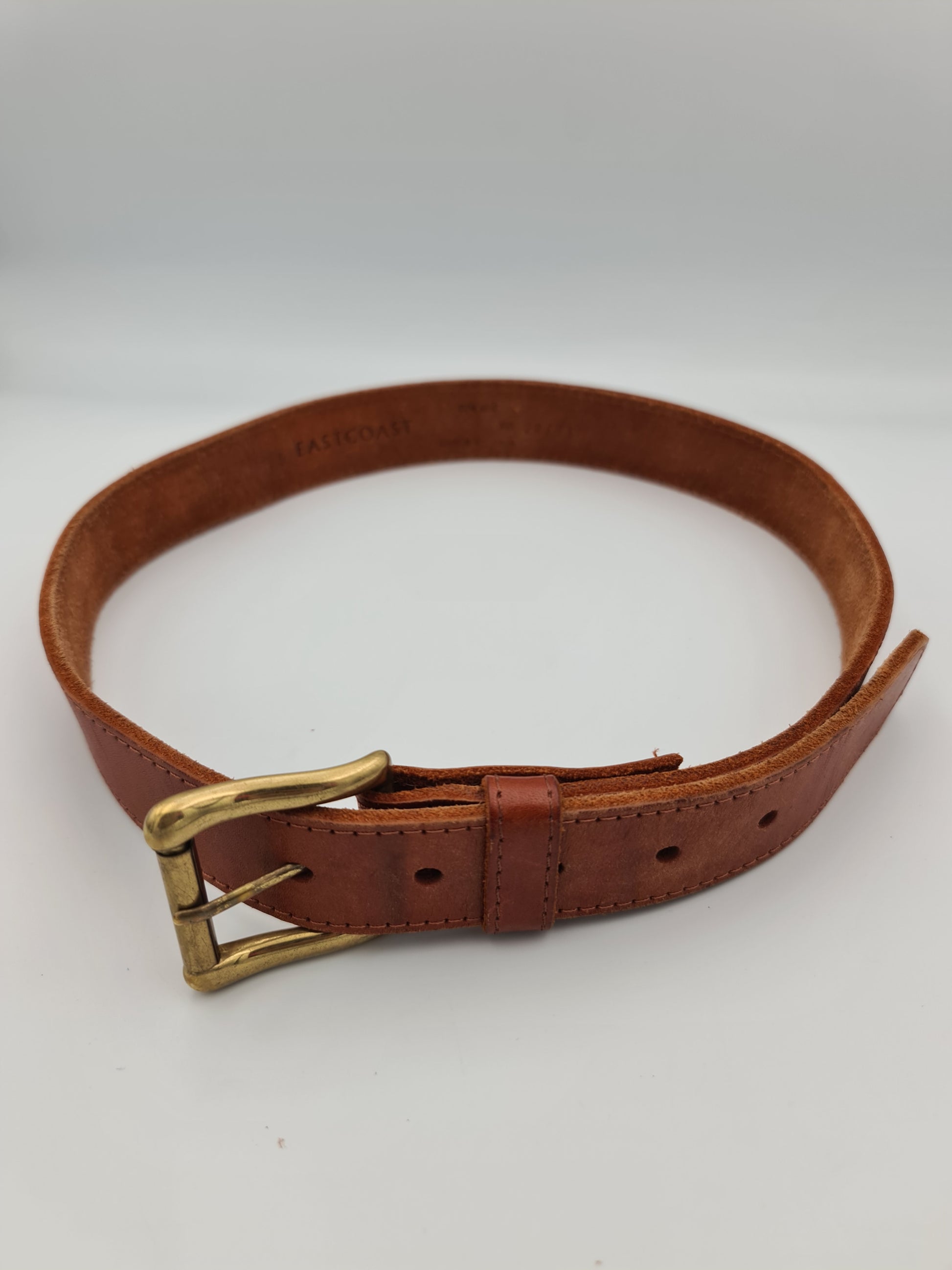 Tan Leather Belt from East Coast, with gold coloured Hardware. Cow hide made in Australia.