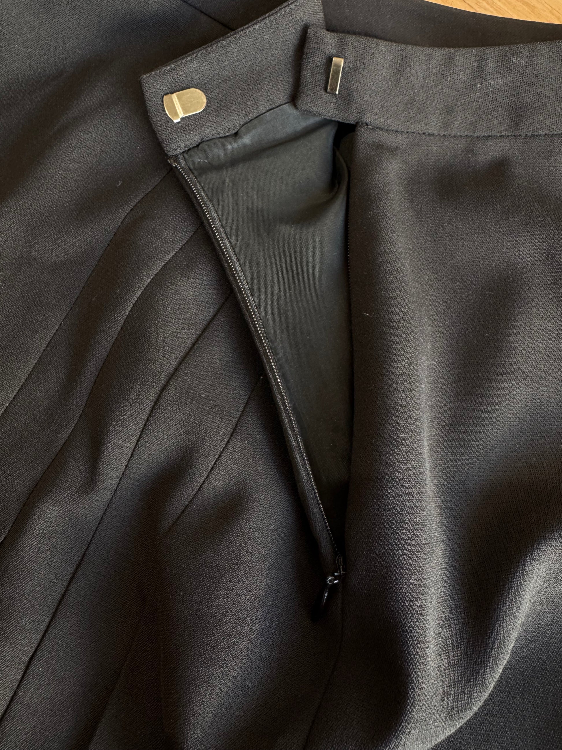 Black pleated panel skirt from. G2000, back is not pleated and is pencil, has a size invisible zip.