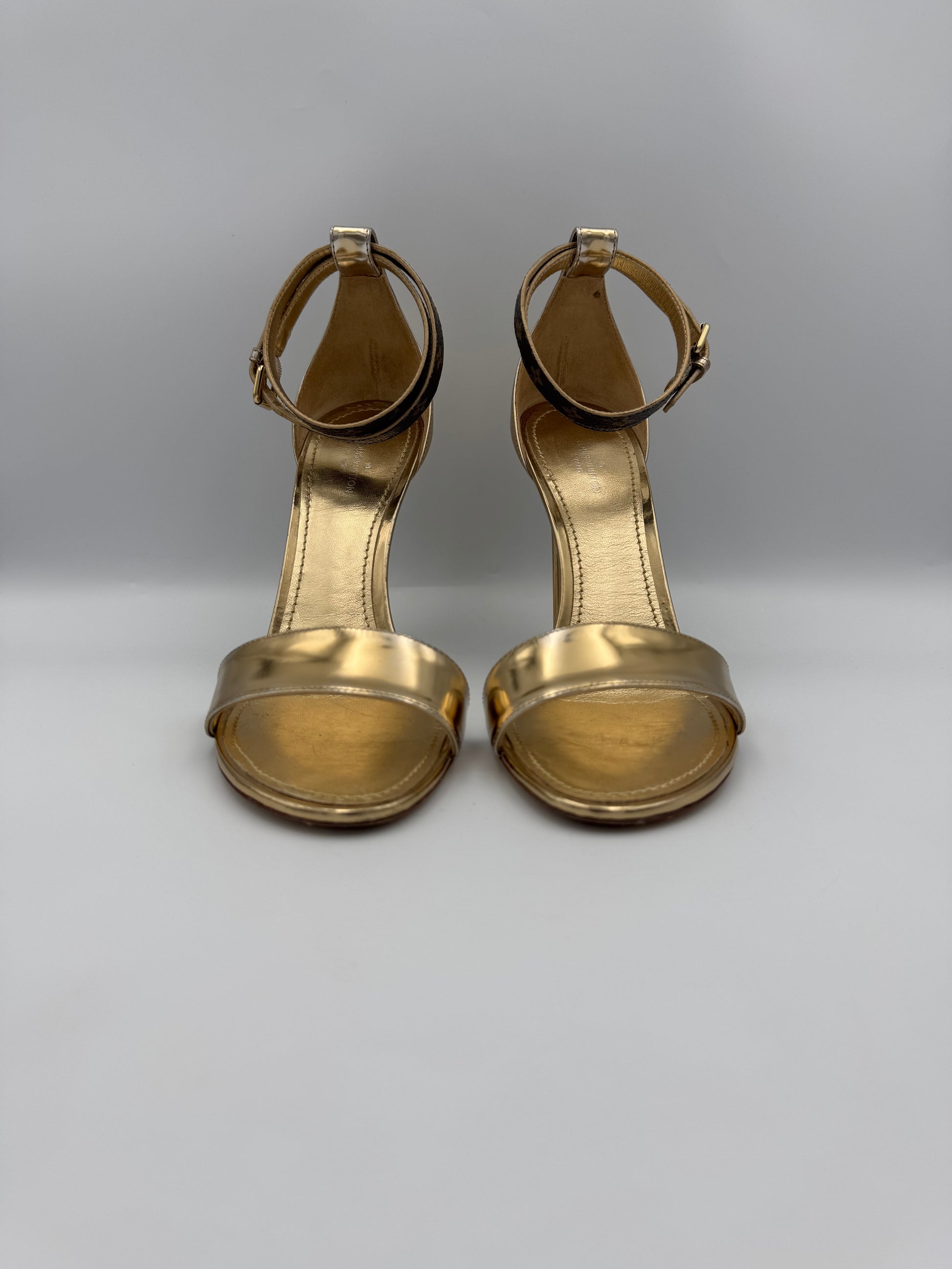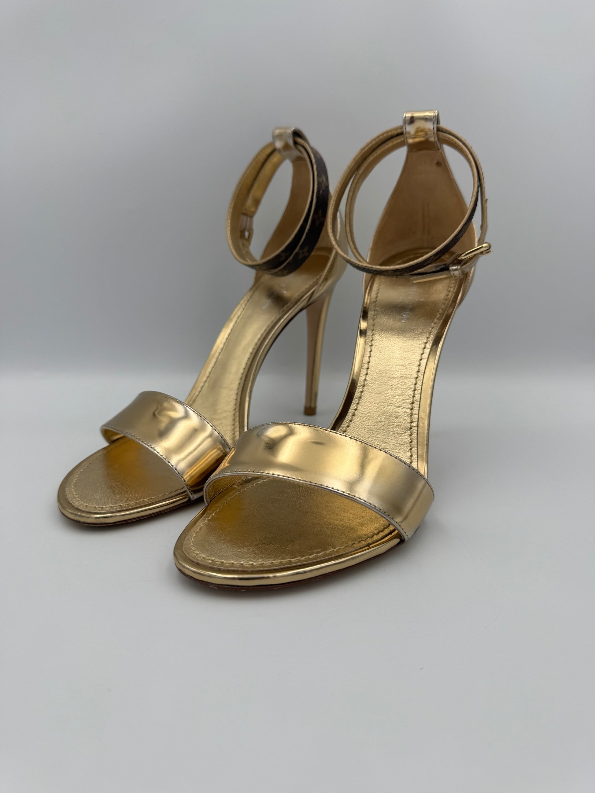 LOUIS VUITTON Gold Strappy Heels 38.5