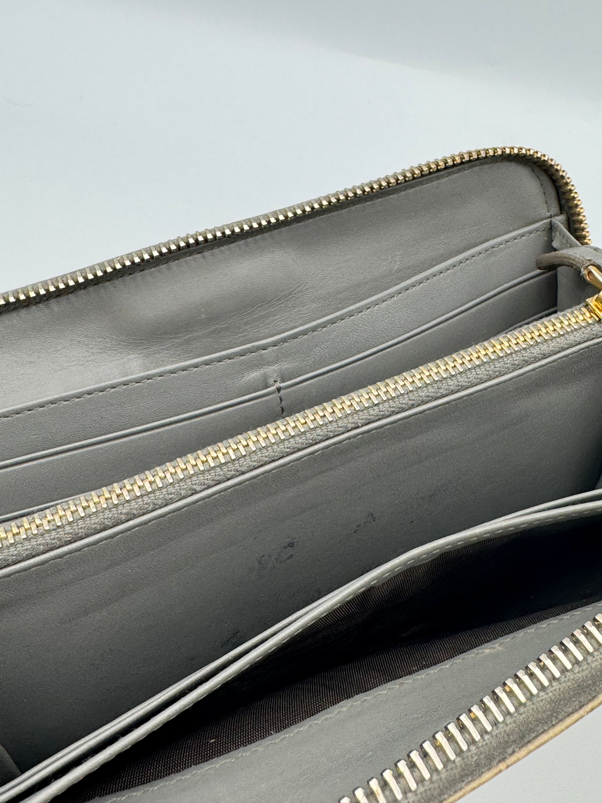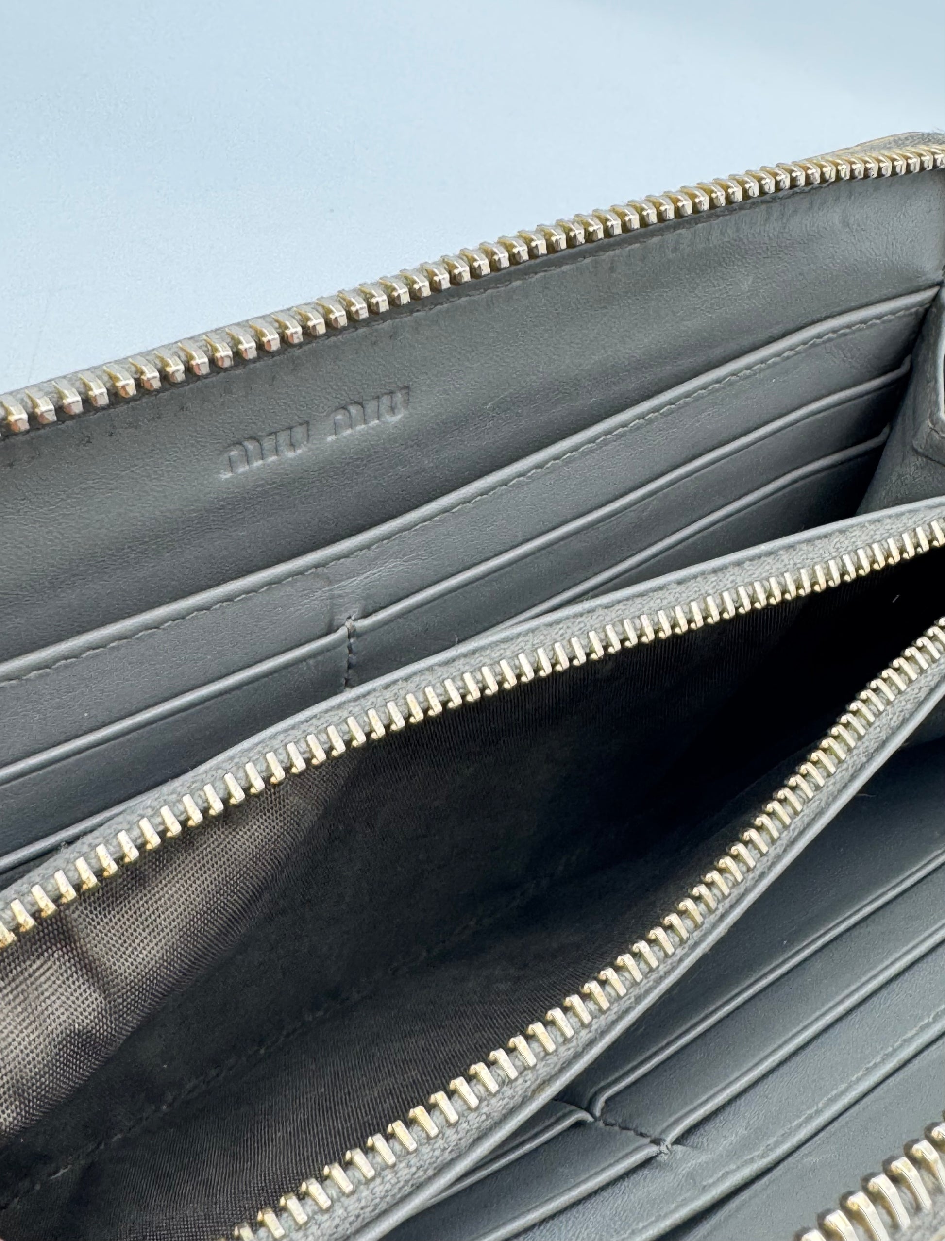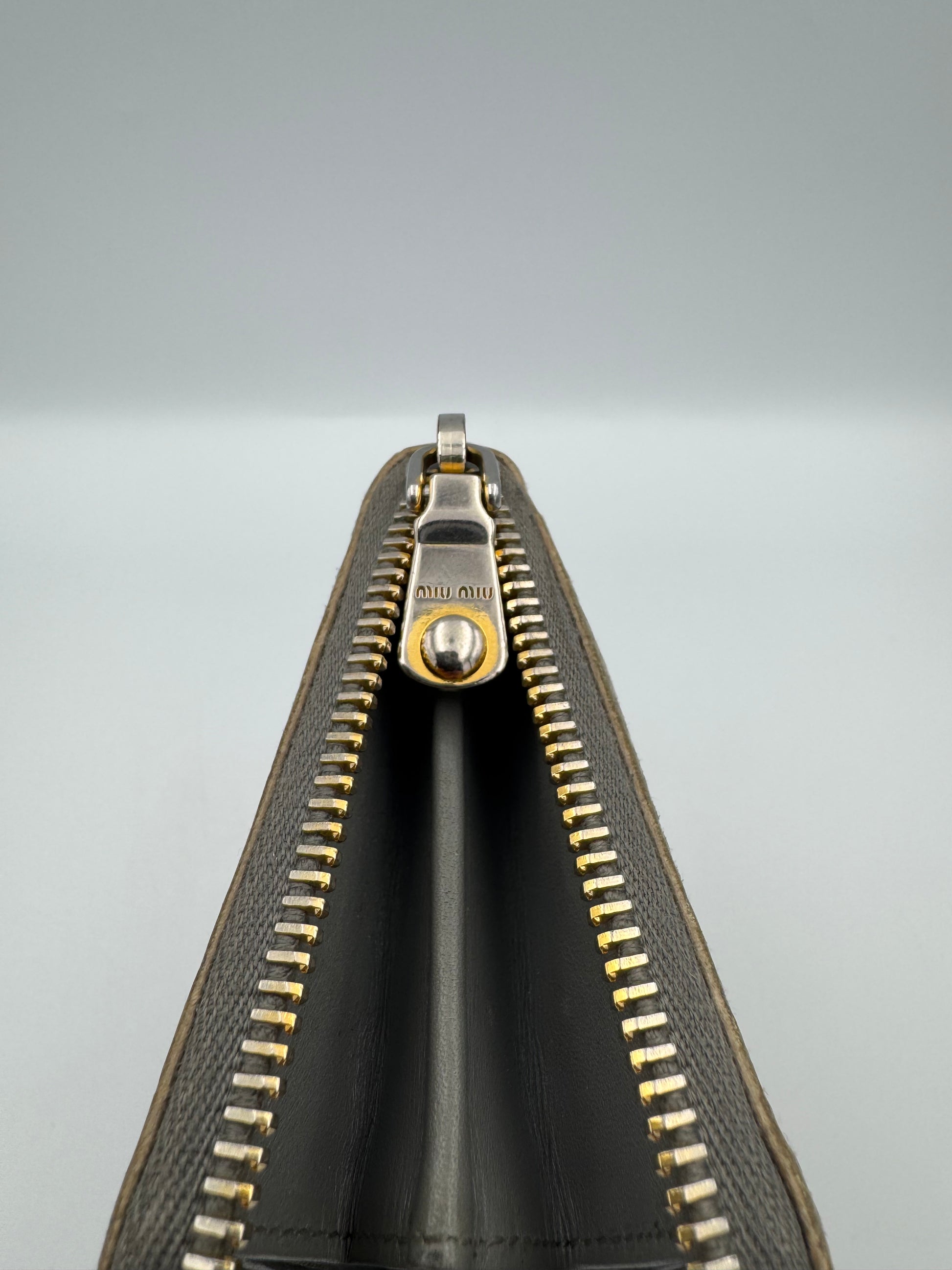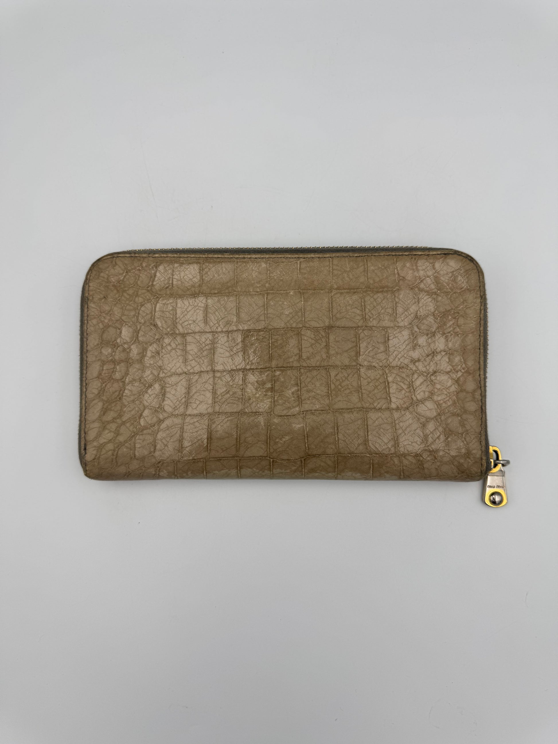 MIU MIU Beige Crocodile Leather Round-zip Long Waller (pre-loved) This wallet is in excellent used condition showing extremely minimal signs on wear on its corners. Inside is super clean! Hardware is in worn condition.
