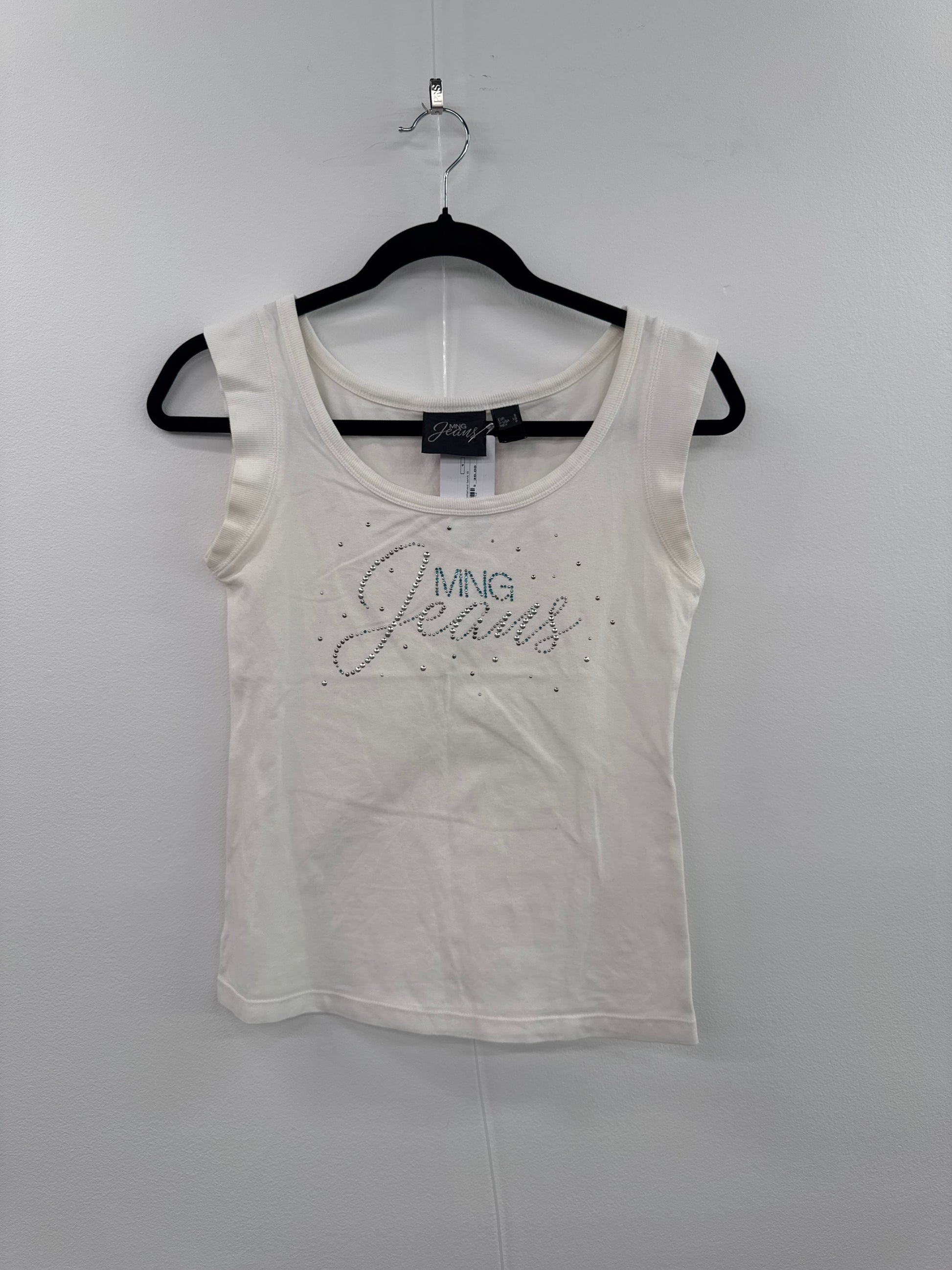 MNG embellished silver/blue tank. Marked size S, true to size. A few diamantes missing as pictured, otherwise in great preloved condition with no stains or marks.