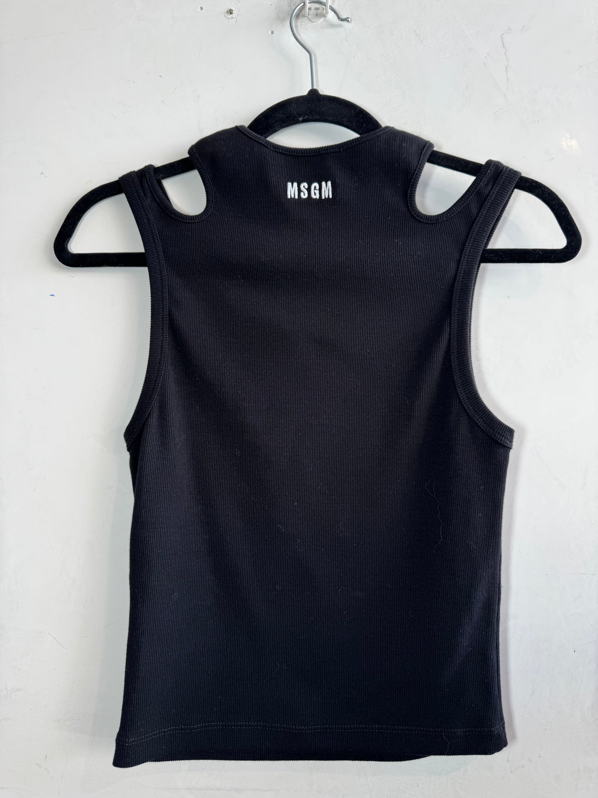 Black rib knit Tank FROM MSGM with crossover collar detail.
