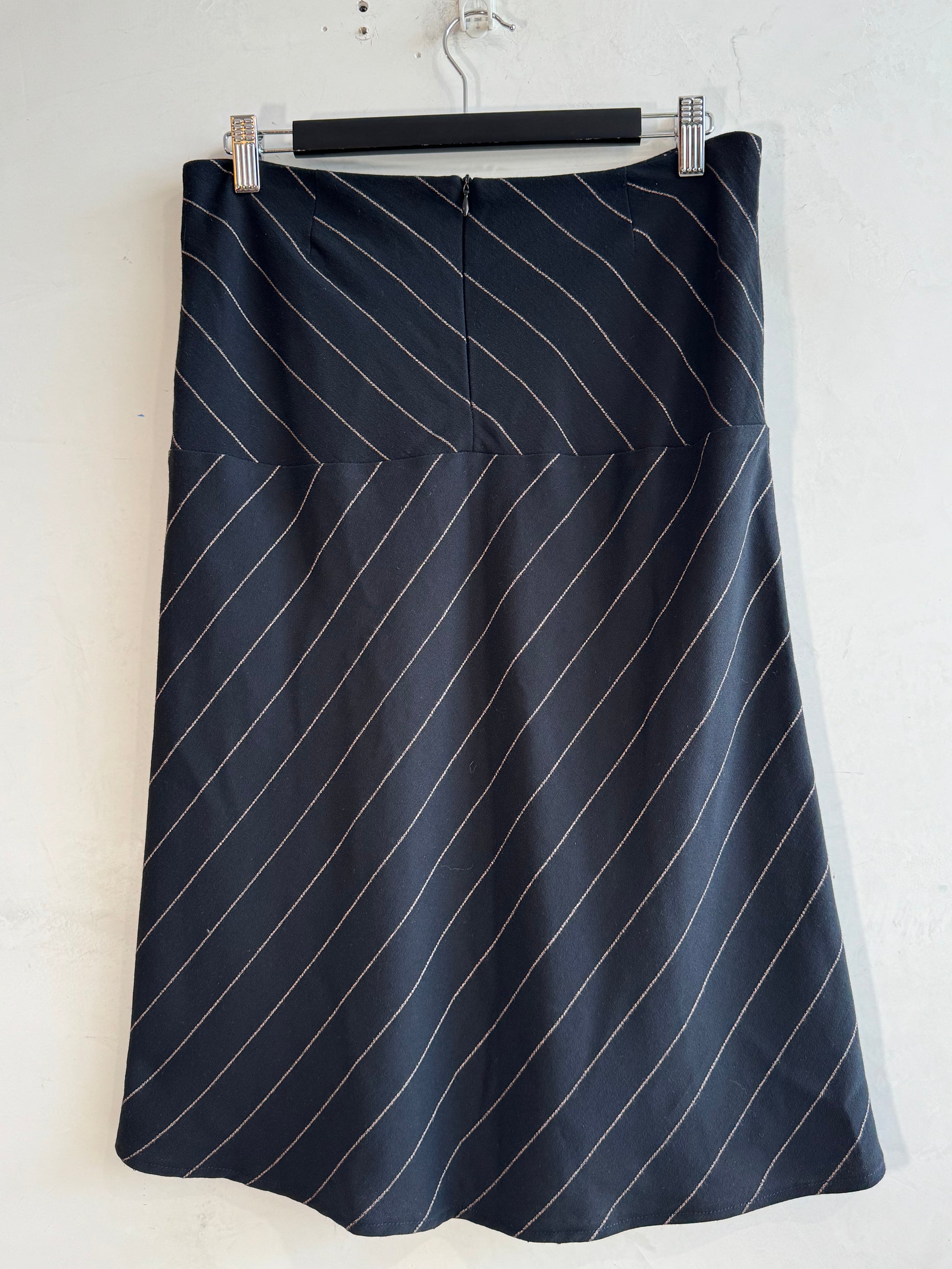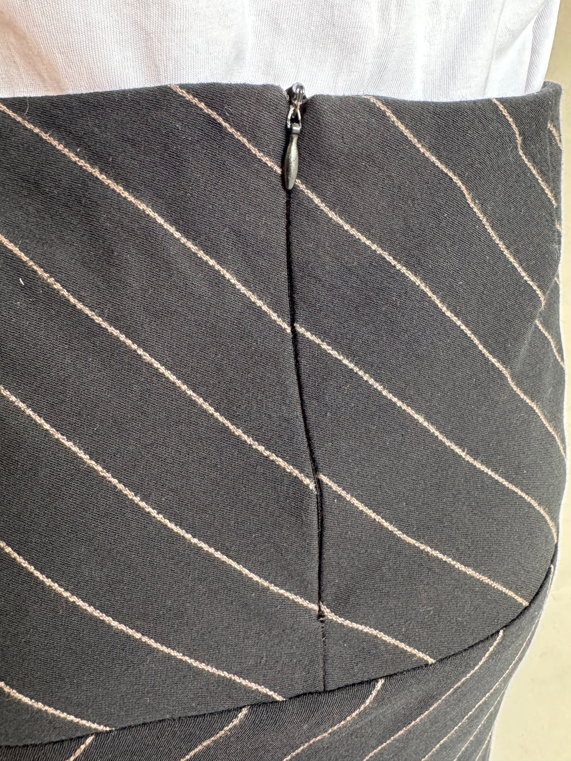 Black midi skirt with brown stripes from Review. Has a black invisible zip.
