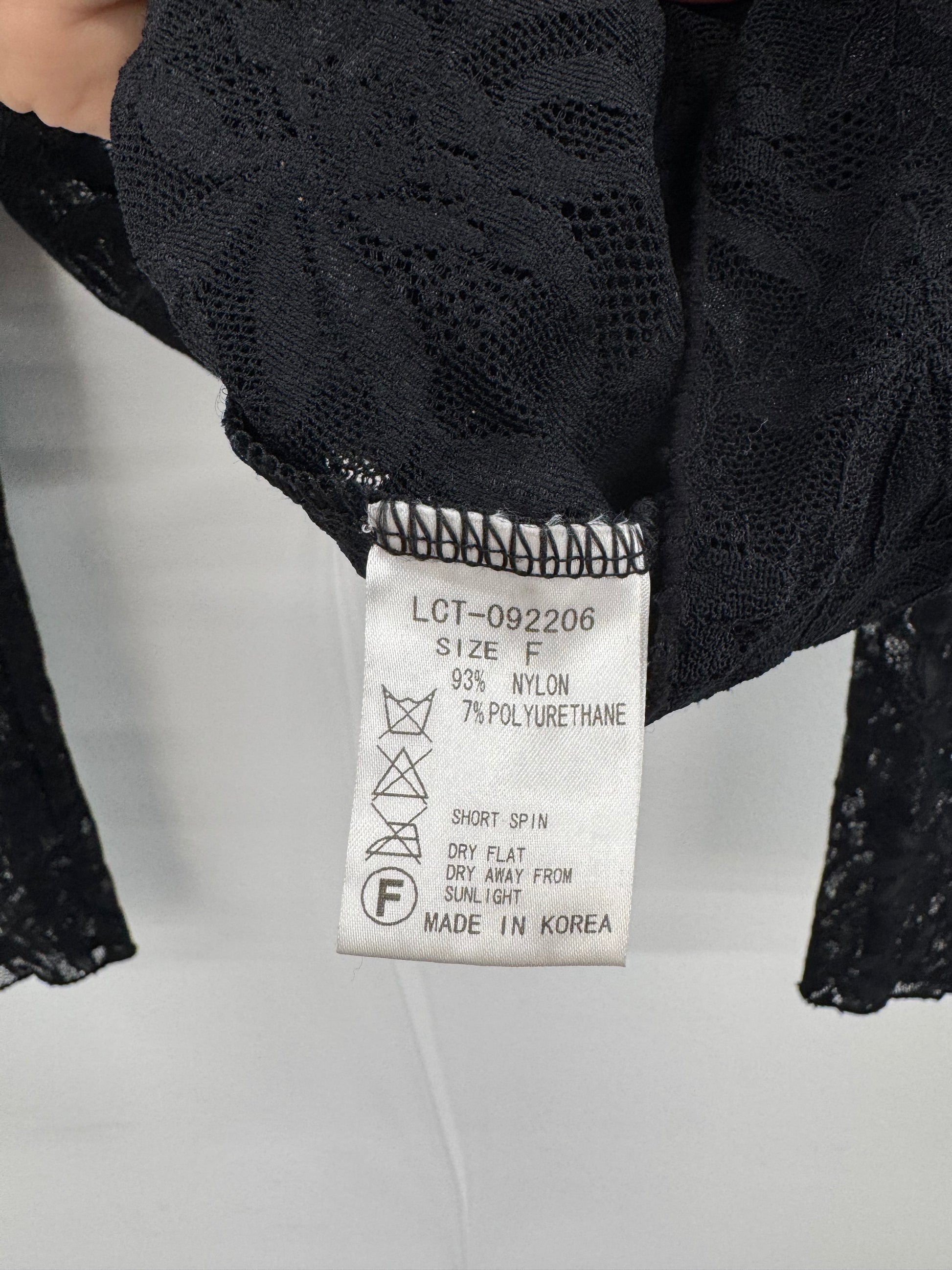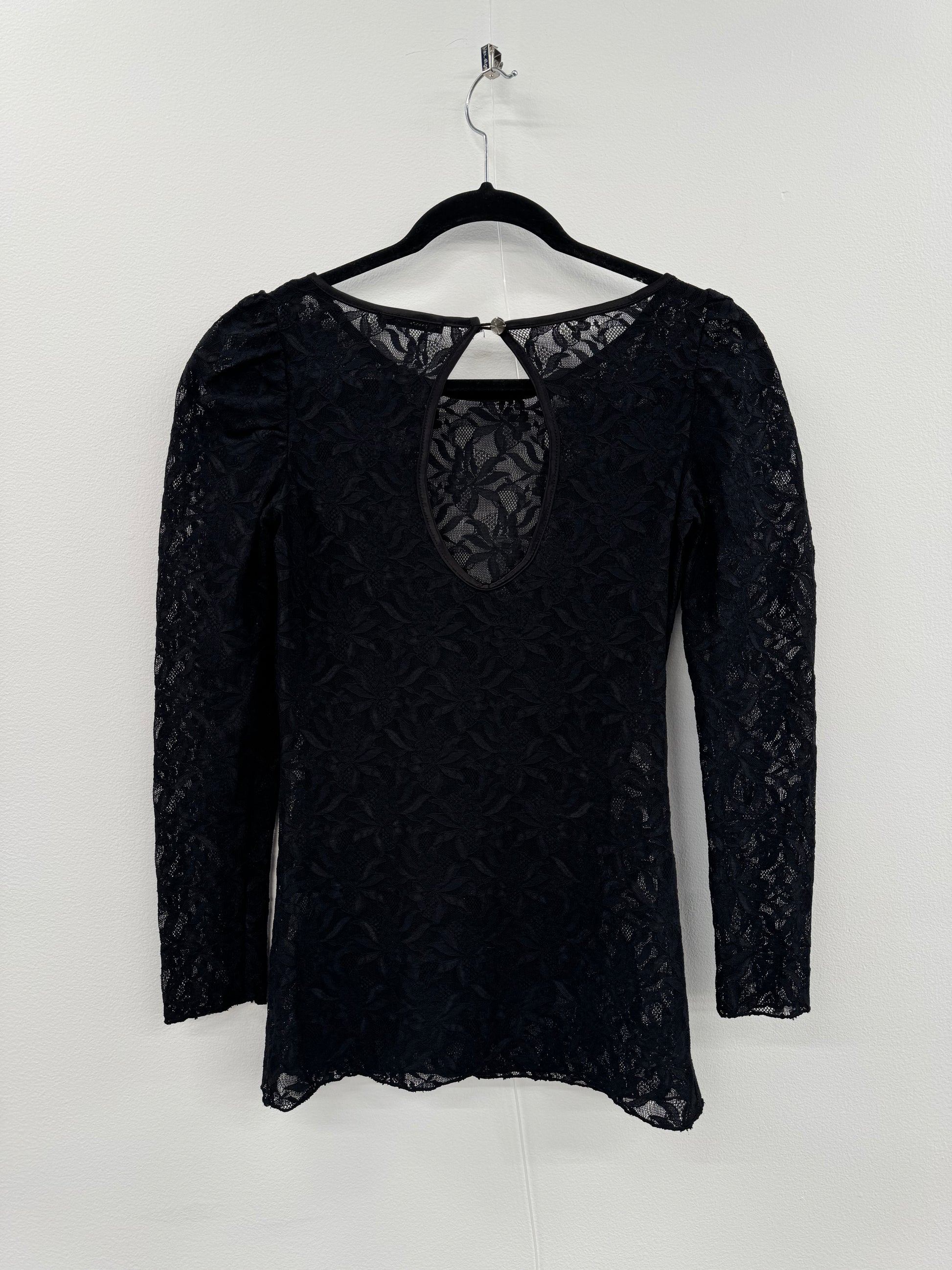 Brand ‘Rosebud’ black lace long sleeve top. Marked size F, fits AU S.