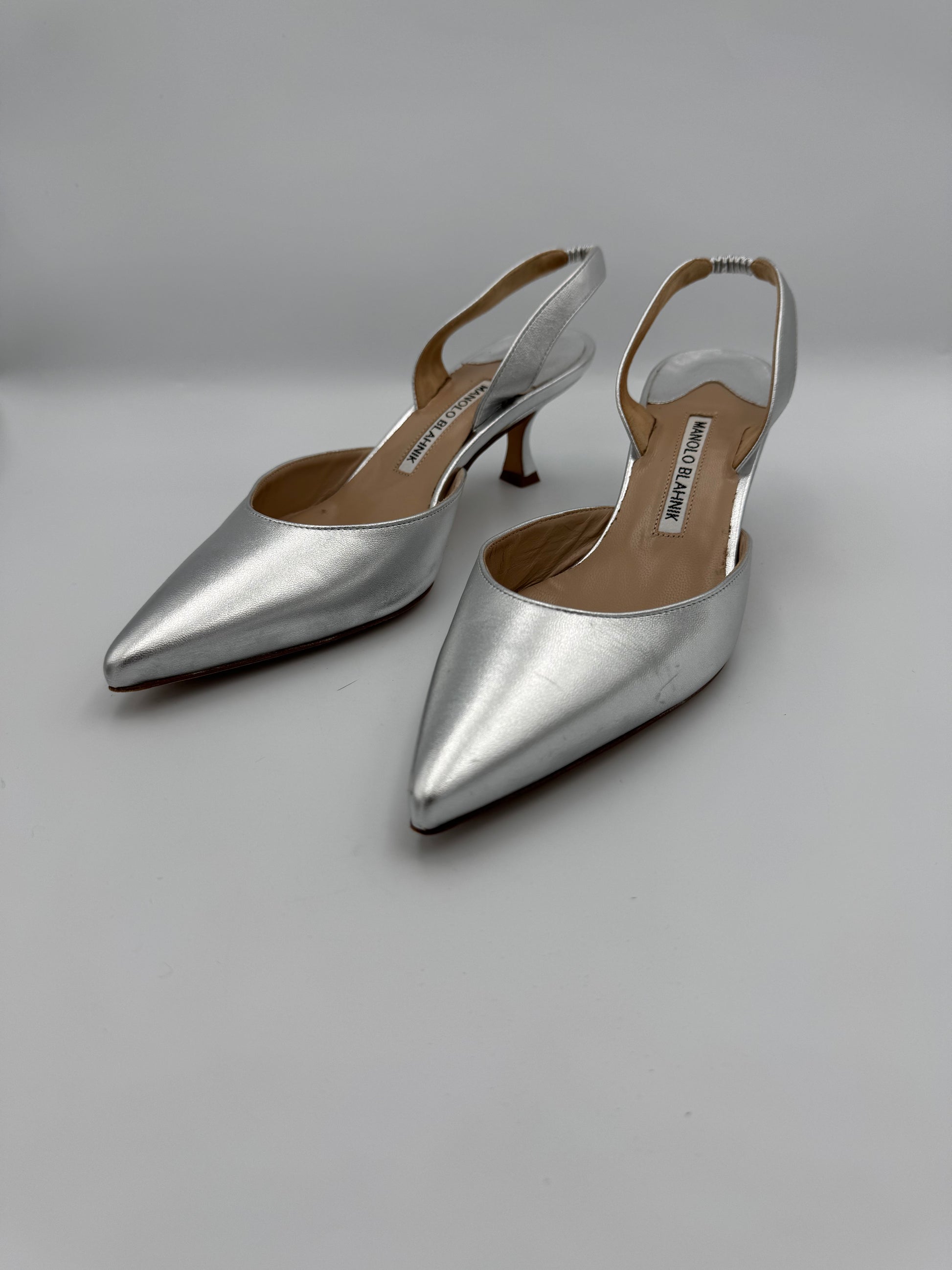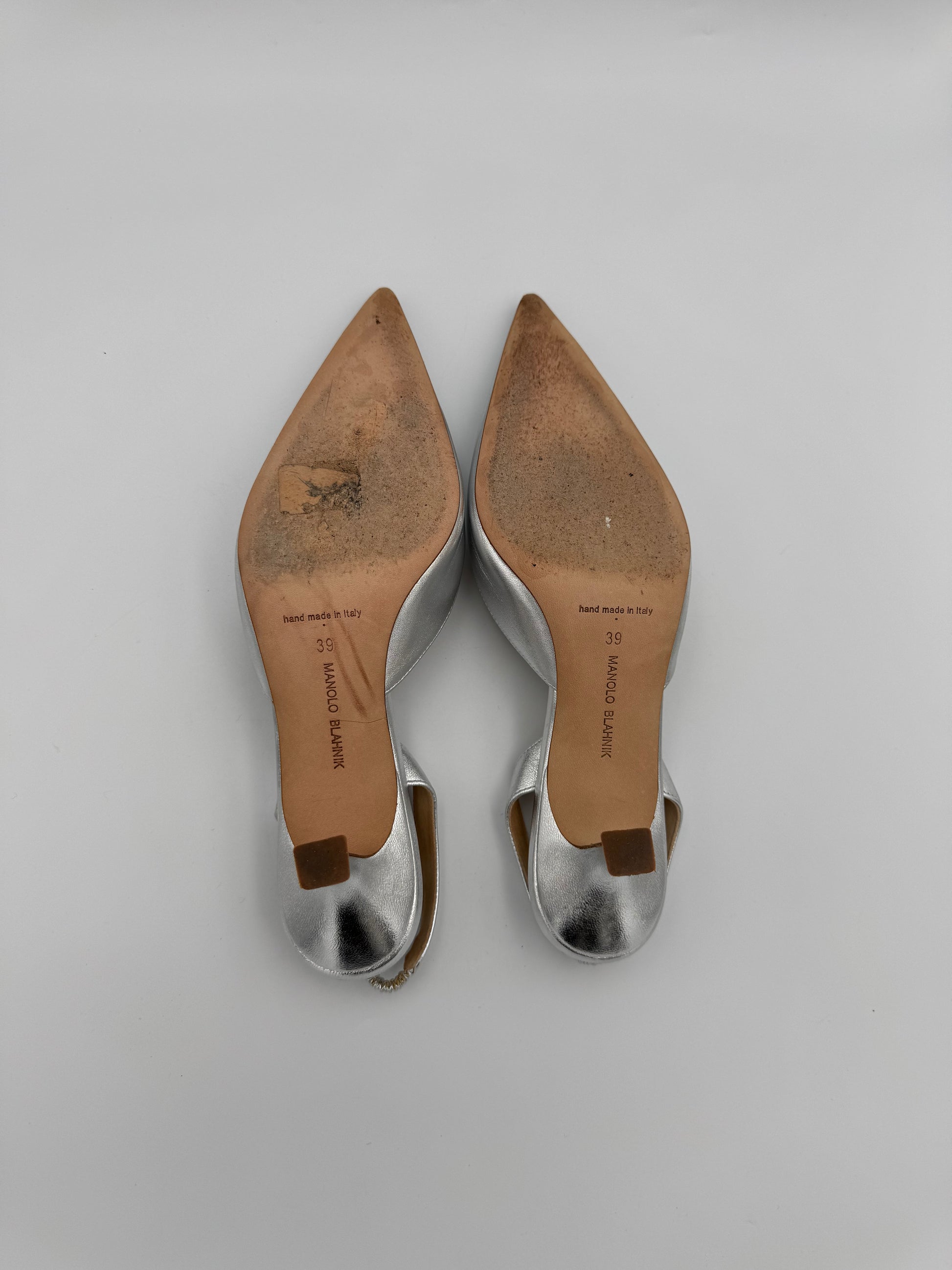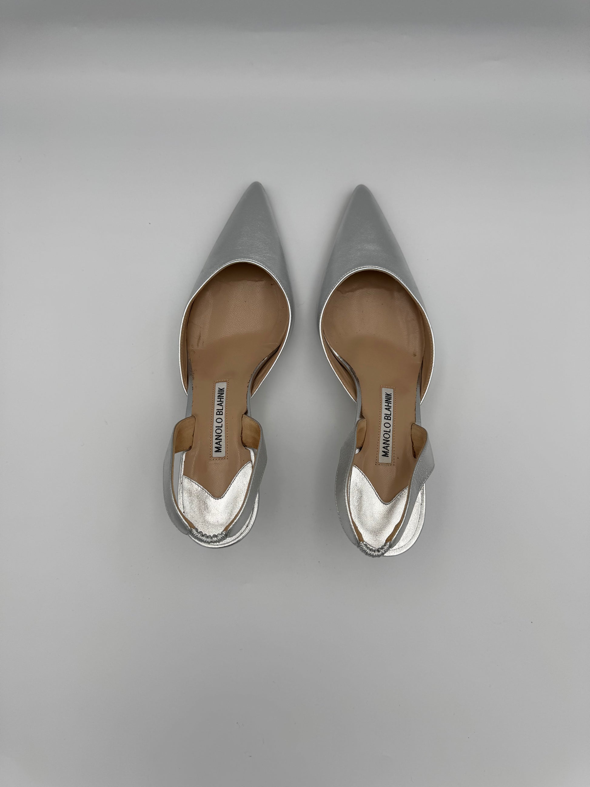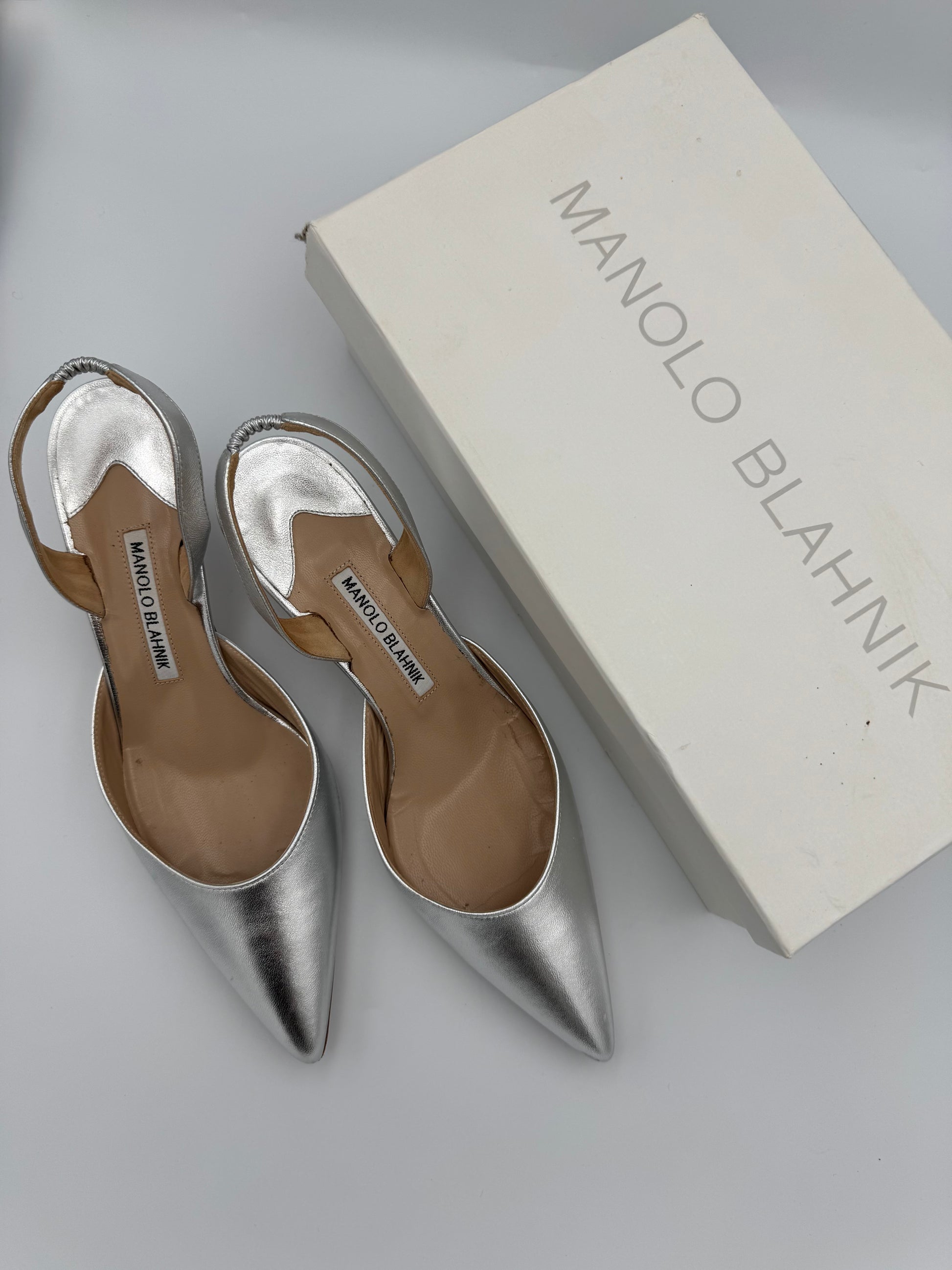 MANOLO BLAHNIK Silver Slingbacks in Style CAROLYNE size 39