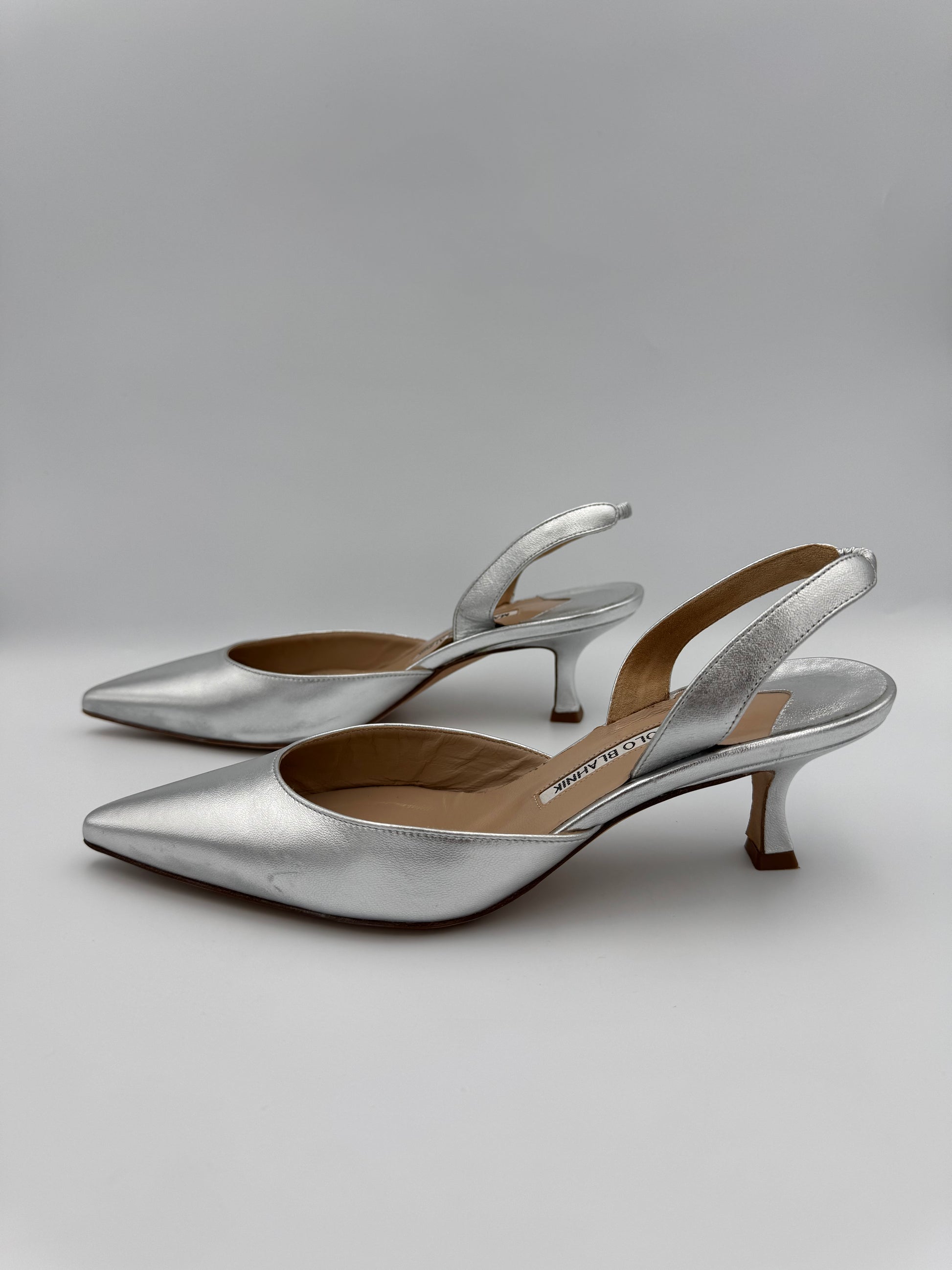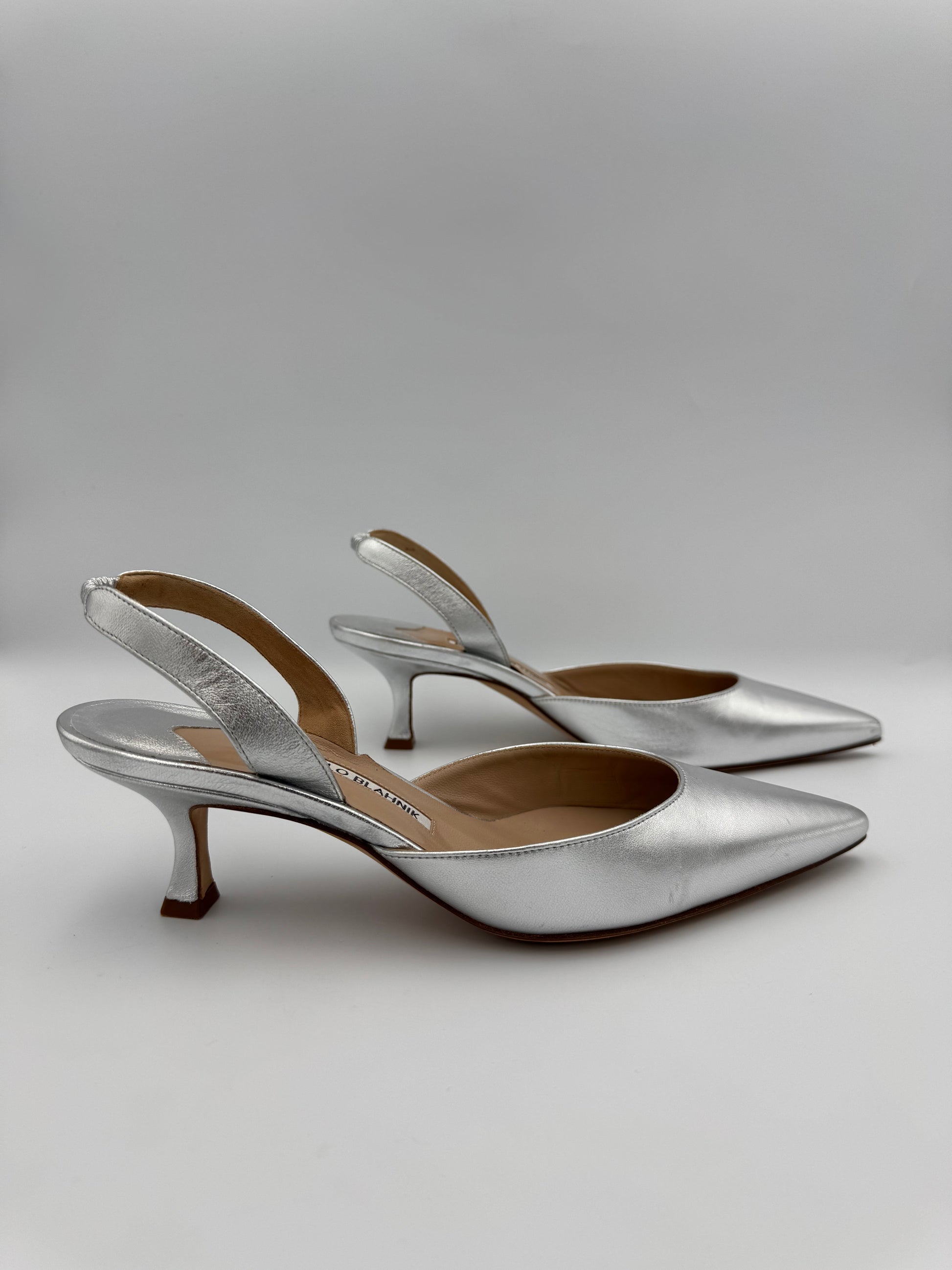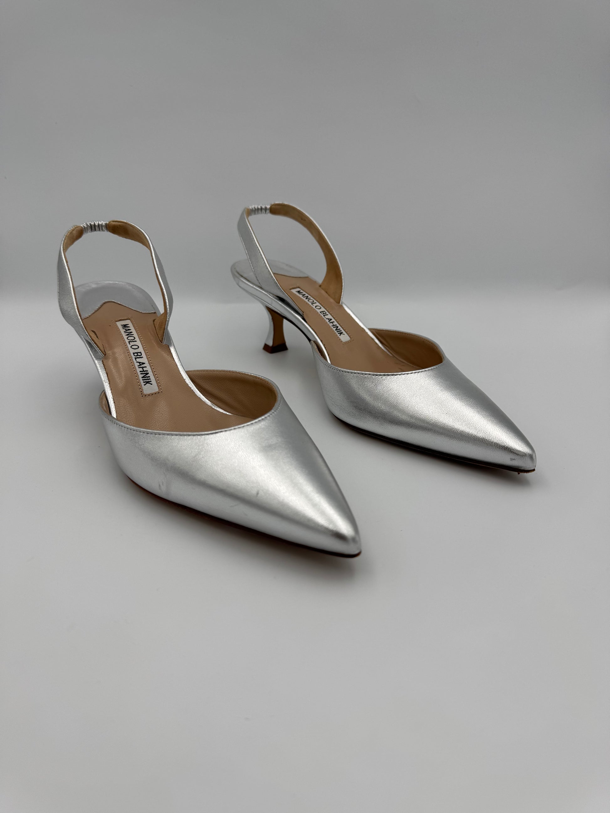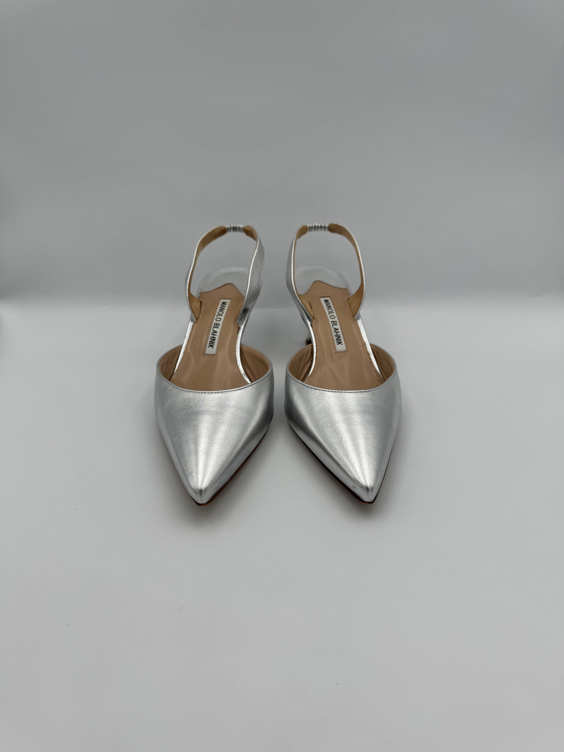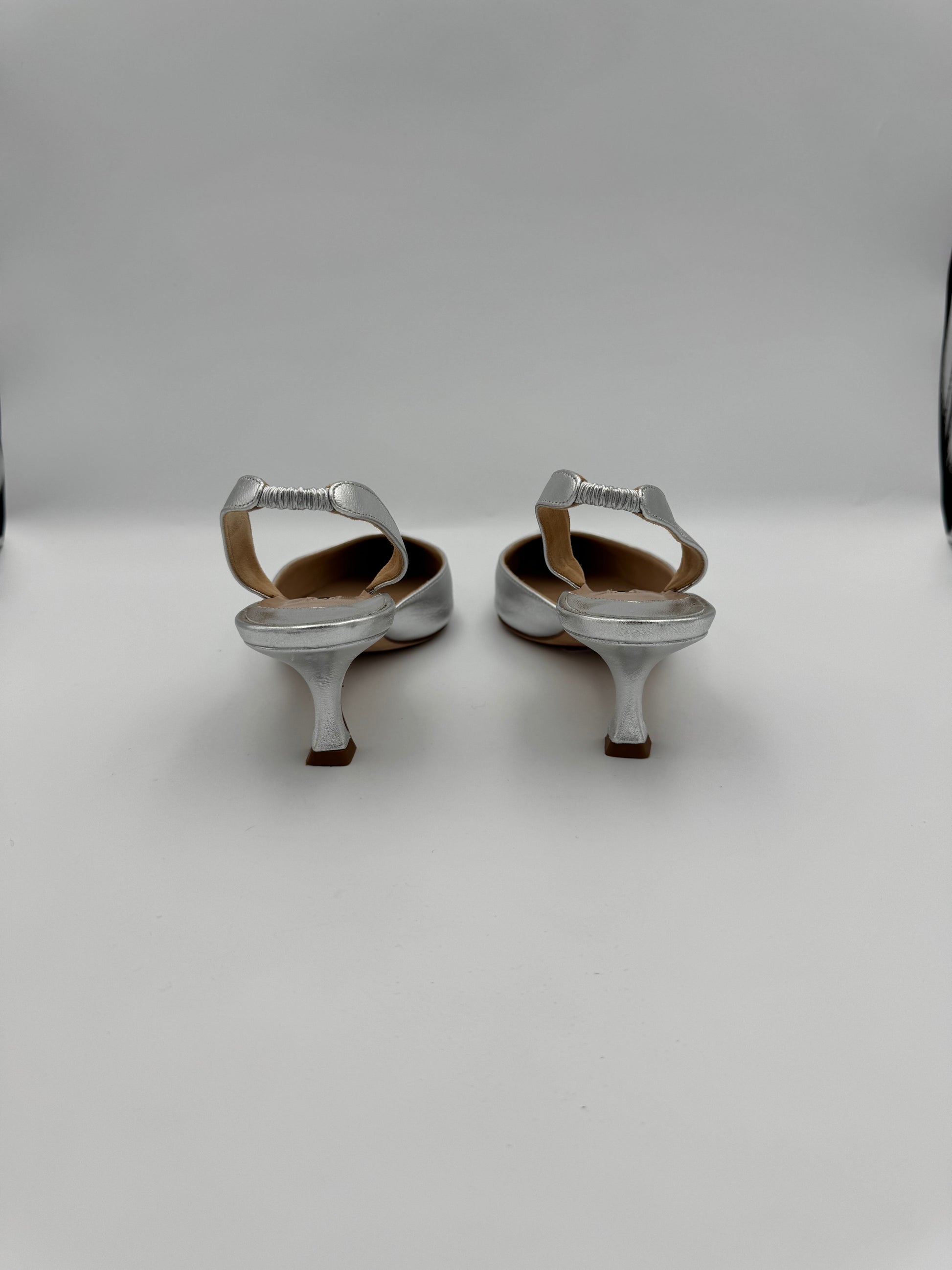 MANOLO BLAHNIK Silver Slingbacks in Style CAROLYNE size 39