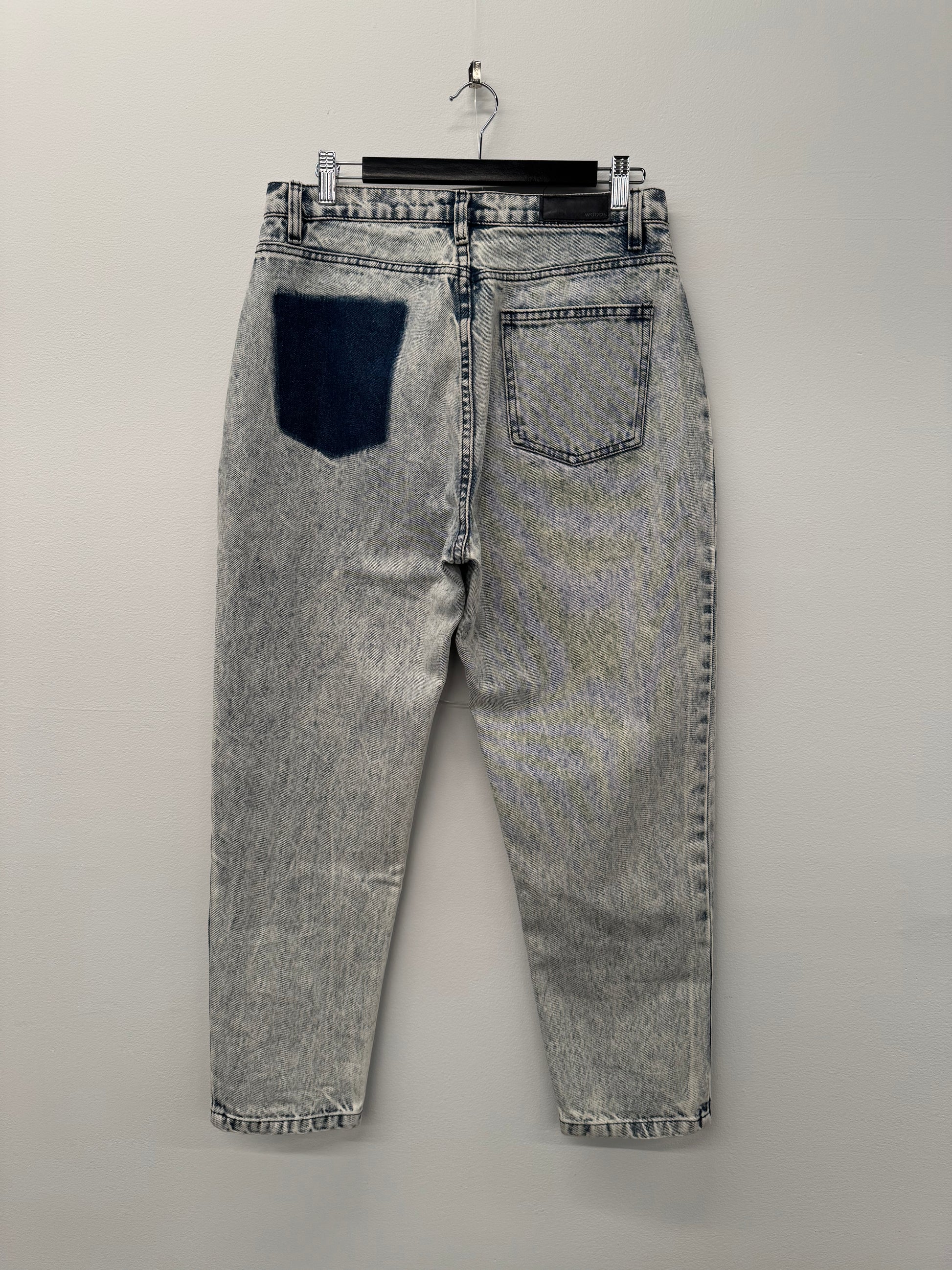 Acid wash Viktoria & Woods ‘Joplin Jean’. Tapered, high rise fit. Size 3 or AU 12. Distressed detailing featuring missing back pocket. Wear/tarnishing on front buttons as pictured, otherwise in great preloved condition. 100% cotton.