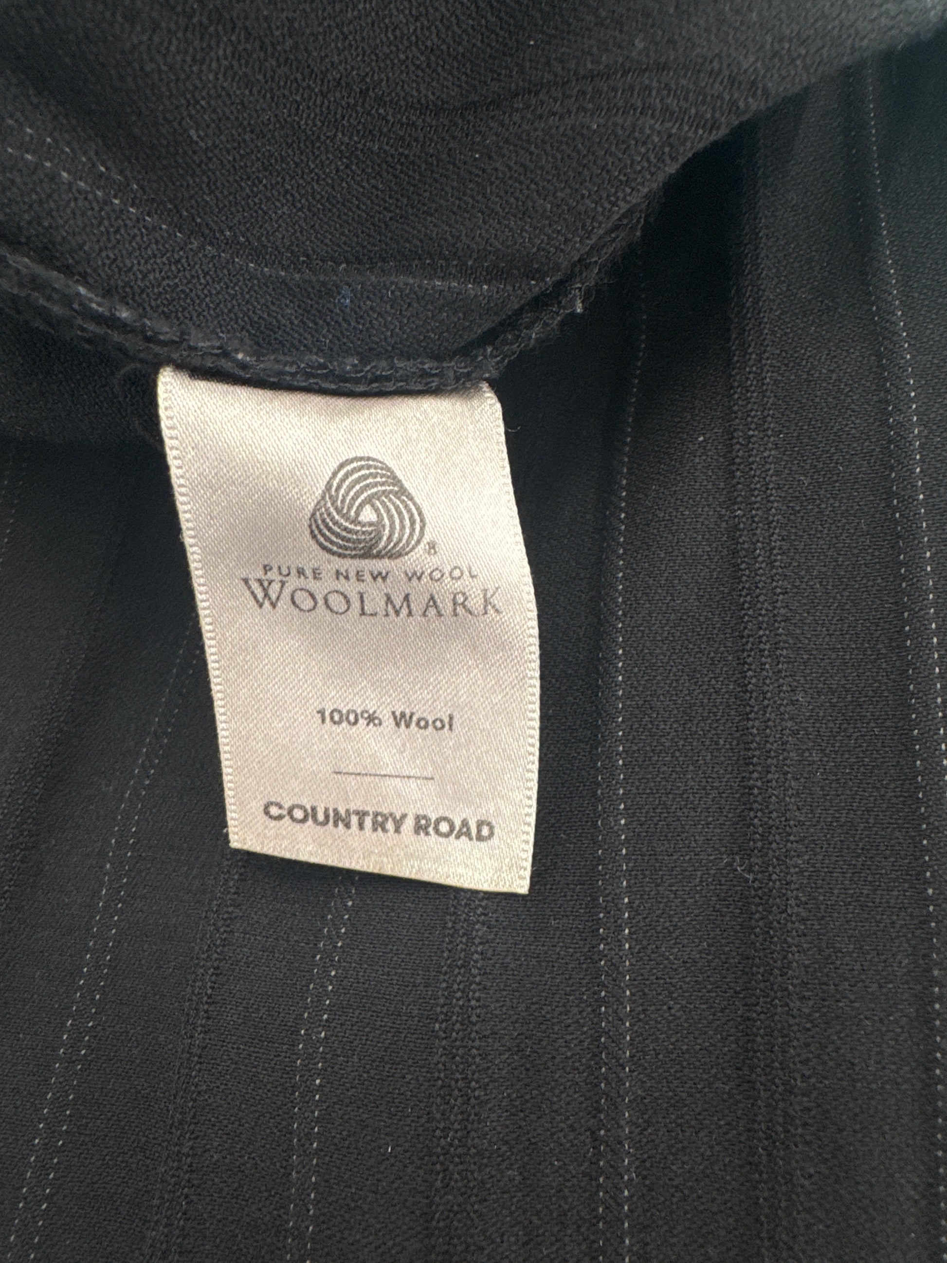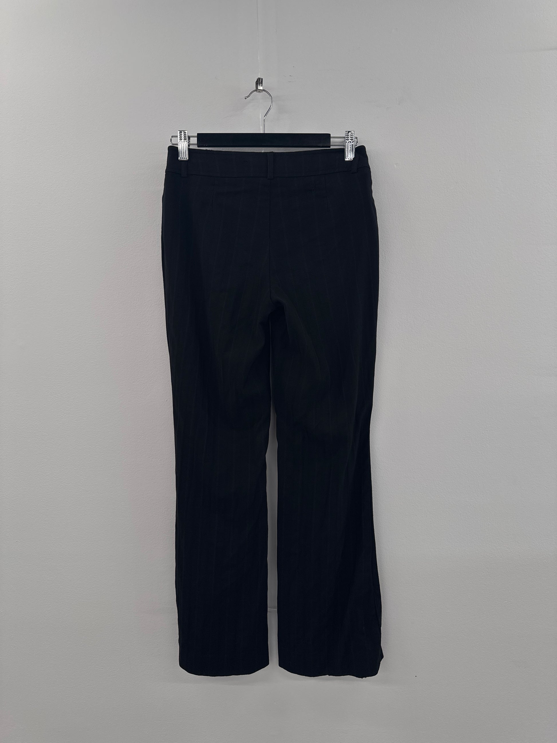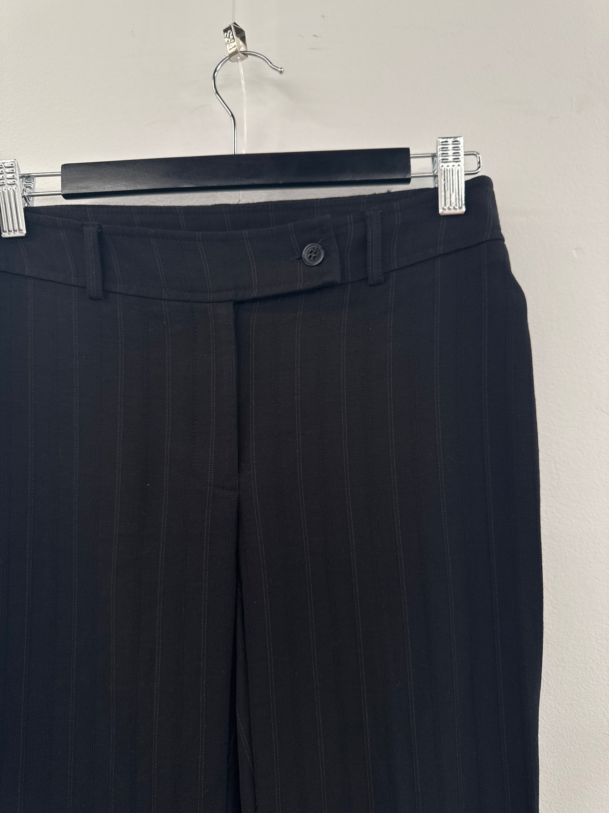 Black pinstripe CR wool pants. Low rise fit with bootcut leg. Button fastening with zip. Medes hole on the back as pictured - otherwise in great vintage condition.