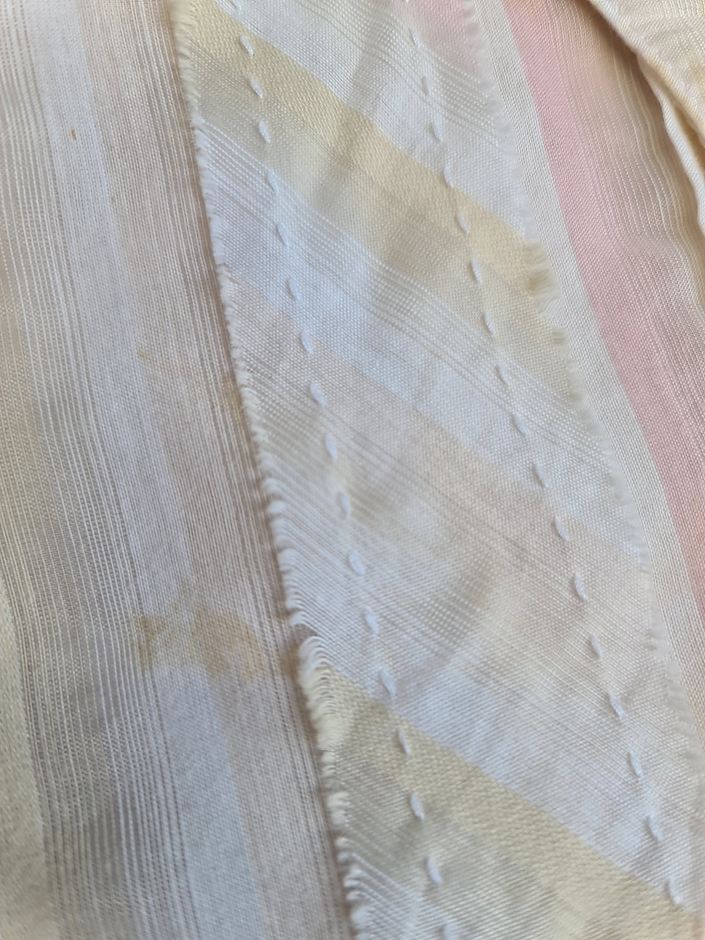 A light pink and beige striped vintage button up from Jump. Note has a small stain on the shoulder.