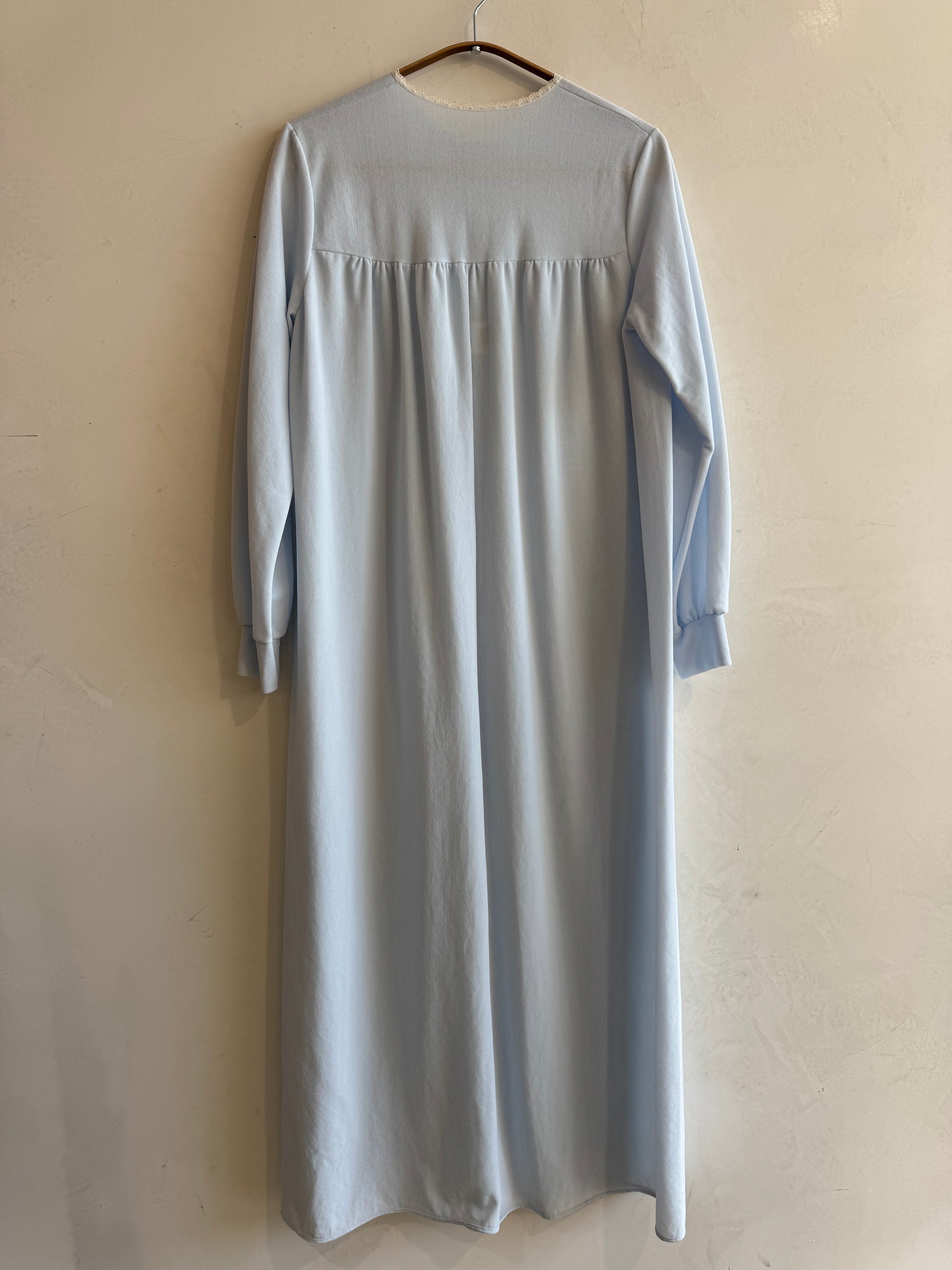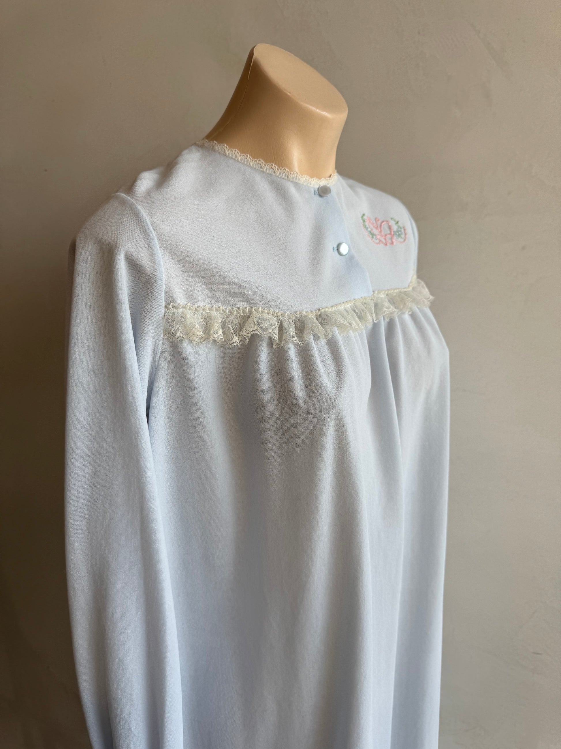 Vintage baby blue night gown from Pedita, has a butterfly embroidery and lace details.