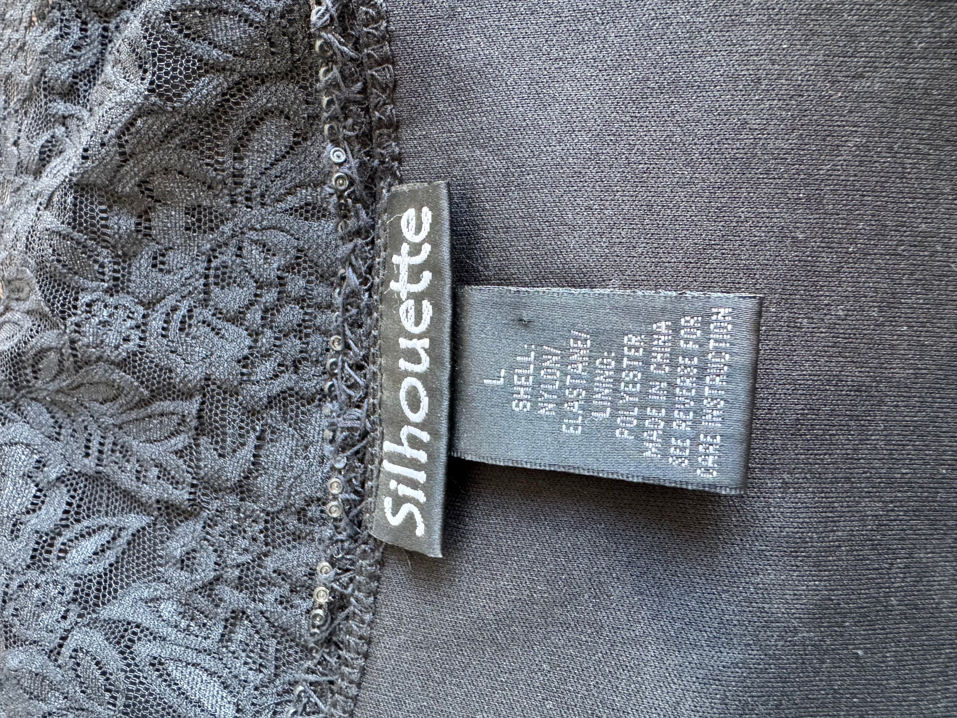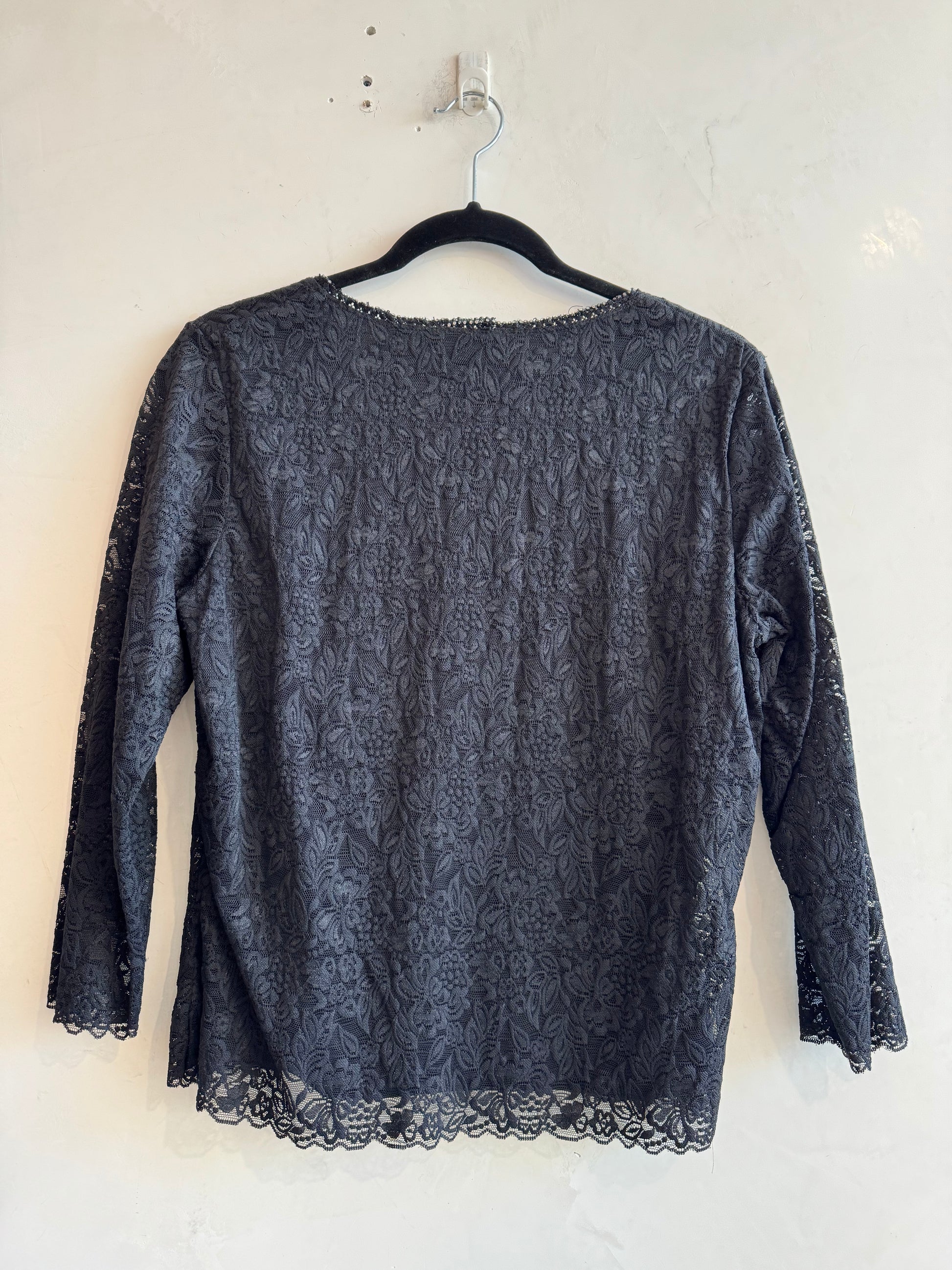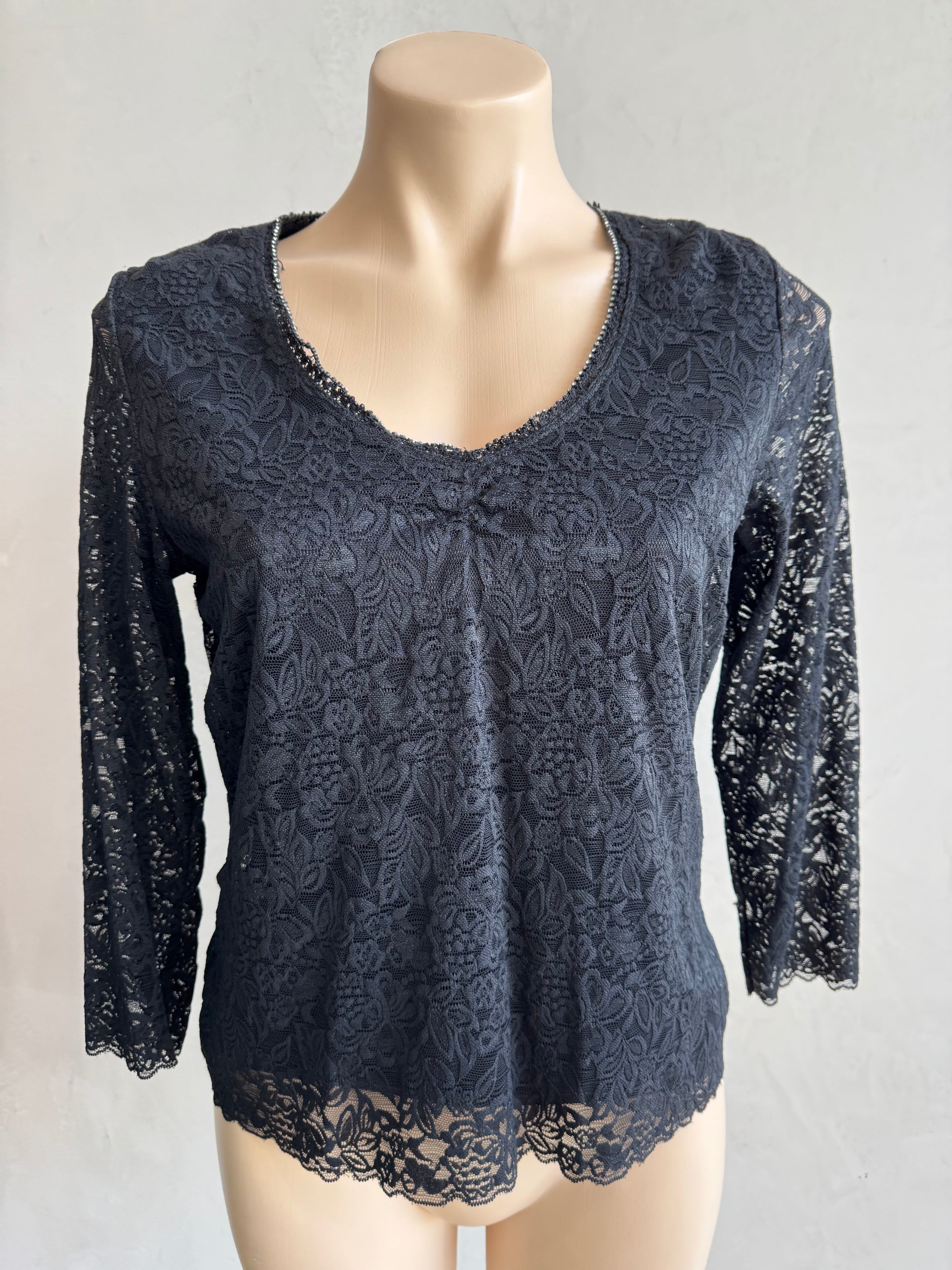 Vintage Silhouette black lace top with diamonte detail on the collar.